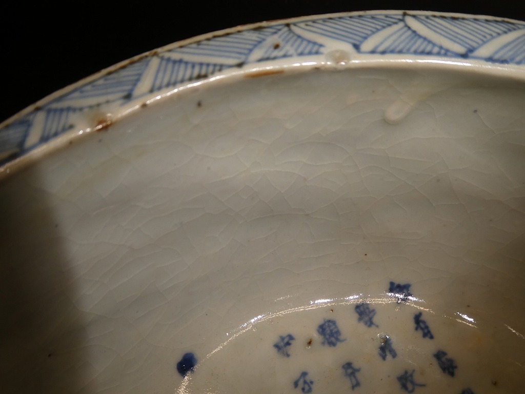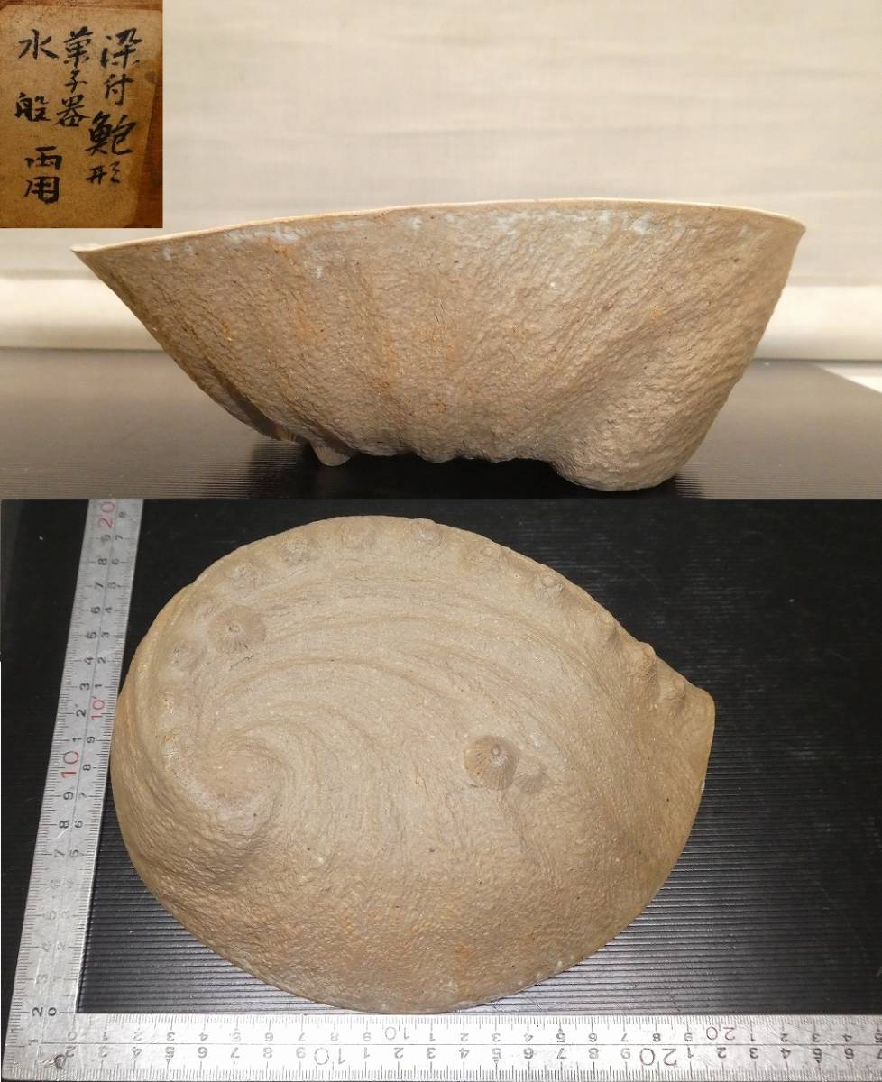 ●古染付 山水 漢詩文 鮑型 菓子器 水盤 共箱 時代物 古美術 茶道具 珍品●割烹 日本料理 料亭