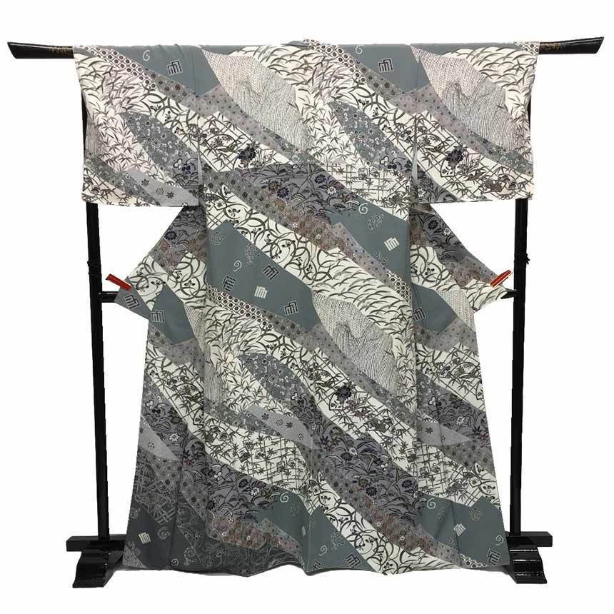 | 商品名 | 京やC042 正絹 小紋 丹後ちりめん 高級ちりめん 日本の絹マーク 笹 唐草 季節の草花 地紙文様 小紋 未使用 新品 仕立て上がり 美品 リサイクル着物 送料無料 |
