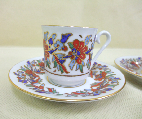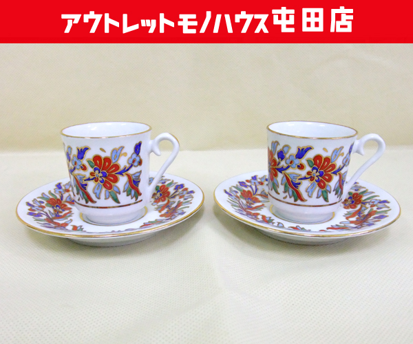 KUTAHYA キュタヒヤ キュタフヤ トルコ陶器 デミタスカップ&ソーサー 2客セット 金彩 ハンドメイド 札幌市 屯田店