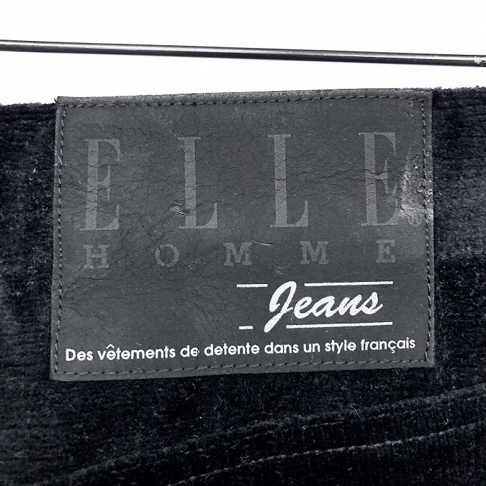 商品タイトル | ELLE HOMME Jeans エル オム ジーンズ 79 メンズ ベロアパンツ テーパード ウエストにロゴパッチ ジップフライ ロング 綿100% ブラック 黒 |