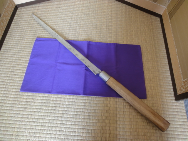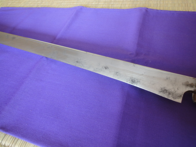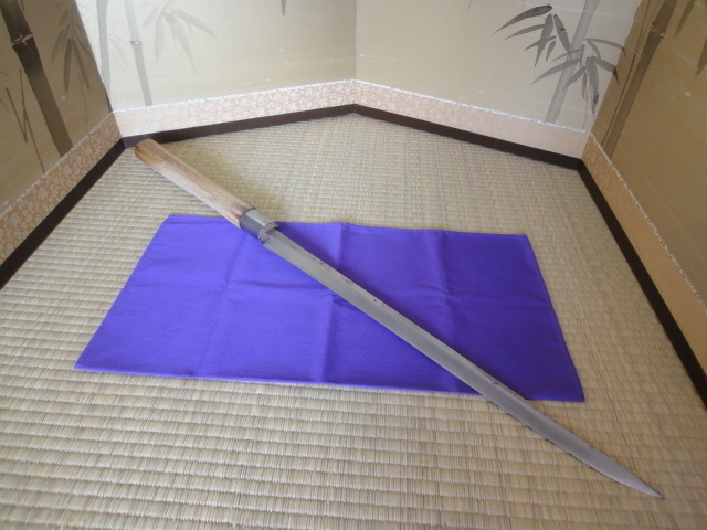【在銘消え】マグロ包丁 ※カジキや鮪等に 刃渡47.3㎝ 全長78㎝ 峰厚8㎜ ※片刃 中古品 全国一律送料1830円