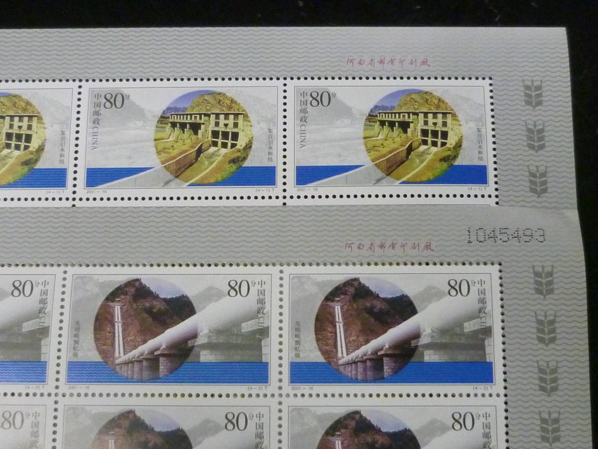 22 P 新中国切手 2001年 16T 引大入秦プロジェクト 4種完 16面シート 未使用NH、VF