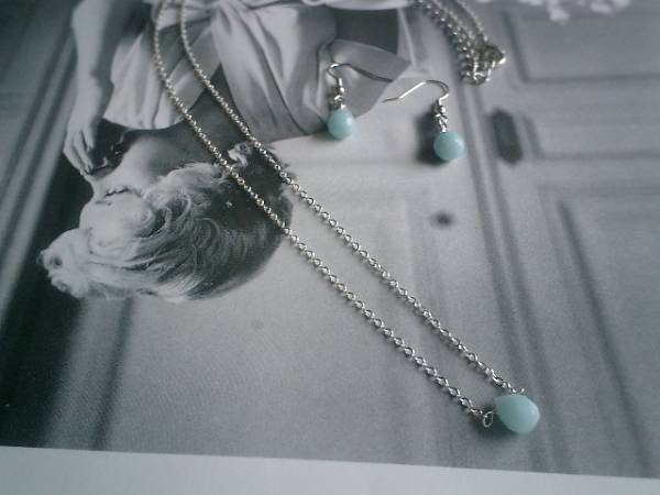 6月のクローゼット・・シリーズです♪水色の雨・・儚げな水色のアマゾナイトのネックレスとピアス2点セットです♪小粒のドロップカットのアマゾナイトに華奢なチェーンを合わせて可憐な表情です♪アマゾナイトは12ミリ×7ミリのドロップカットです♪ネックレスの長さは60センチ+アジャスター12センチで最長72センチ位です♪ピアスの長さは3・5センチ位です♪イヤリングにも変更出来ます♪それぞれ単品でも出品しています♪♪シンプルでいつまでも着けられるデザインを考えて作りました!♪ハンドメイドをご理解頂いてノークレーム、ノーリターンでお願いします