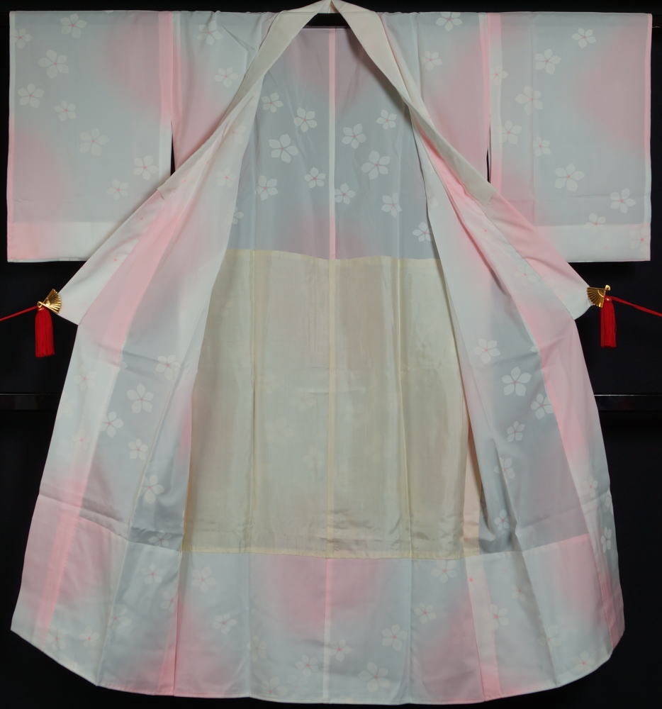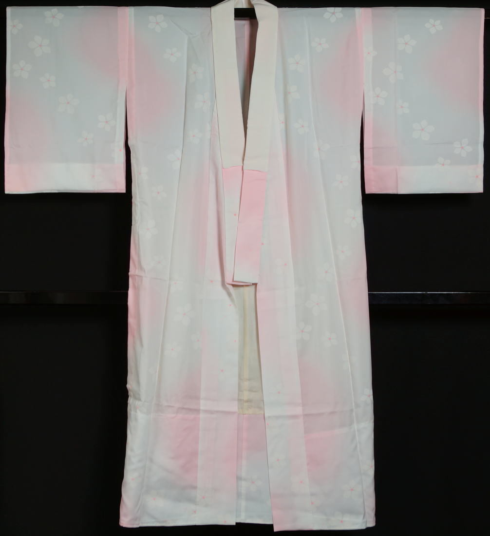 | 商品説明 | 薄ピンク色ぼかしの地に桔梗の花模様が染められた長襦袢です。 ※居敷当てが古く、黄変しています。裾部に僅かなシミがあります。背縫い付近に傷・スレが少しあります。 |