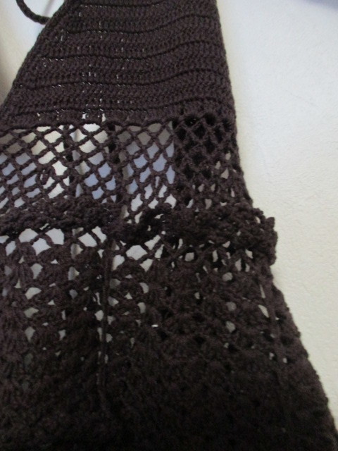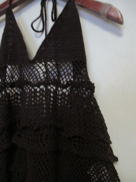 商品紹介 | クロシェ編みがオシャレなホルターネックのキャミソールです。 色は茶色で、コットンニット素材です。 《素材》 コットン100% |