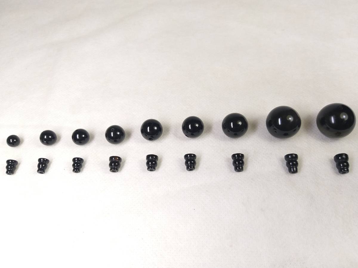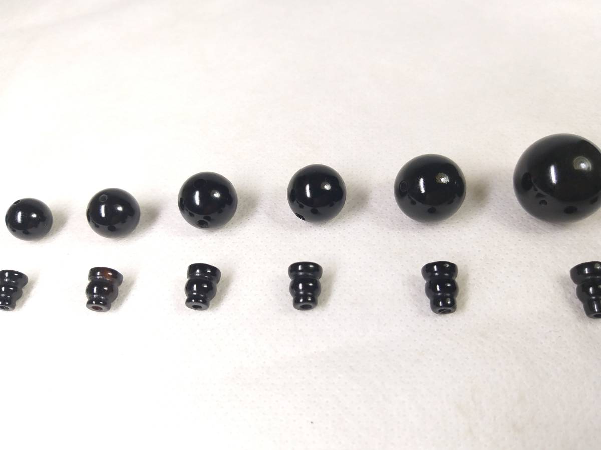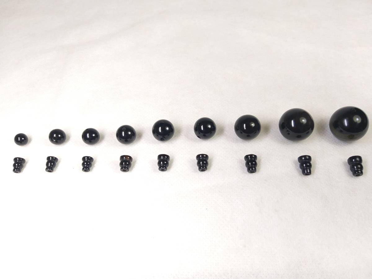 1枚目の写真をご覧下さい。 左から右に順番に並んでいるのは、手元にある直径①8mm②9mm③10mm④10.5mm⑤11mm⑥11.5mm⑦12.2mm⑧14mm⑨16mmの9種類の最高AAA級極品本黒瑪瑙数珠、腕輪念珠用親玉ボサです。それぞれ別途出品中ですので、ご希望のサイズをご確認の上、ご入札下さい。