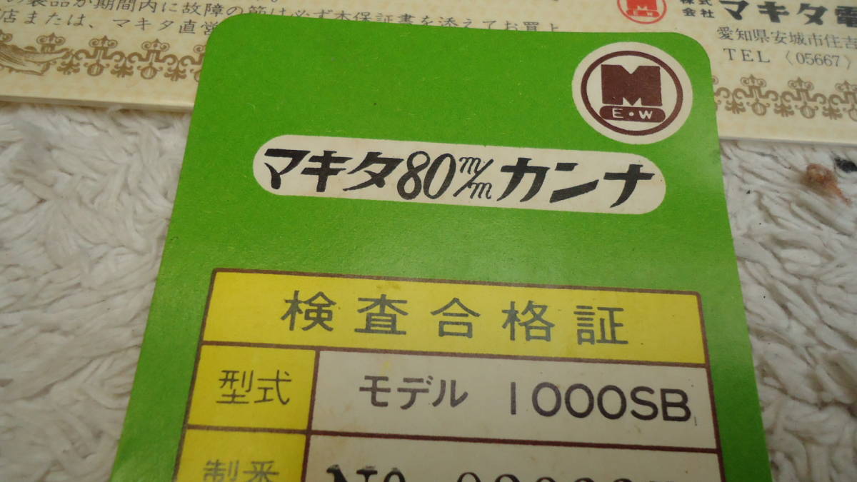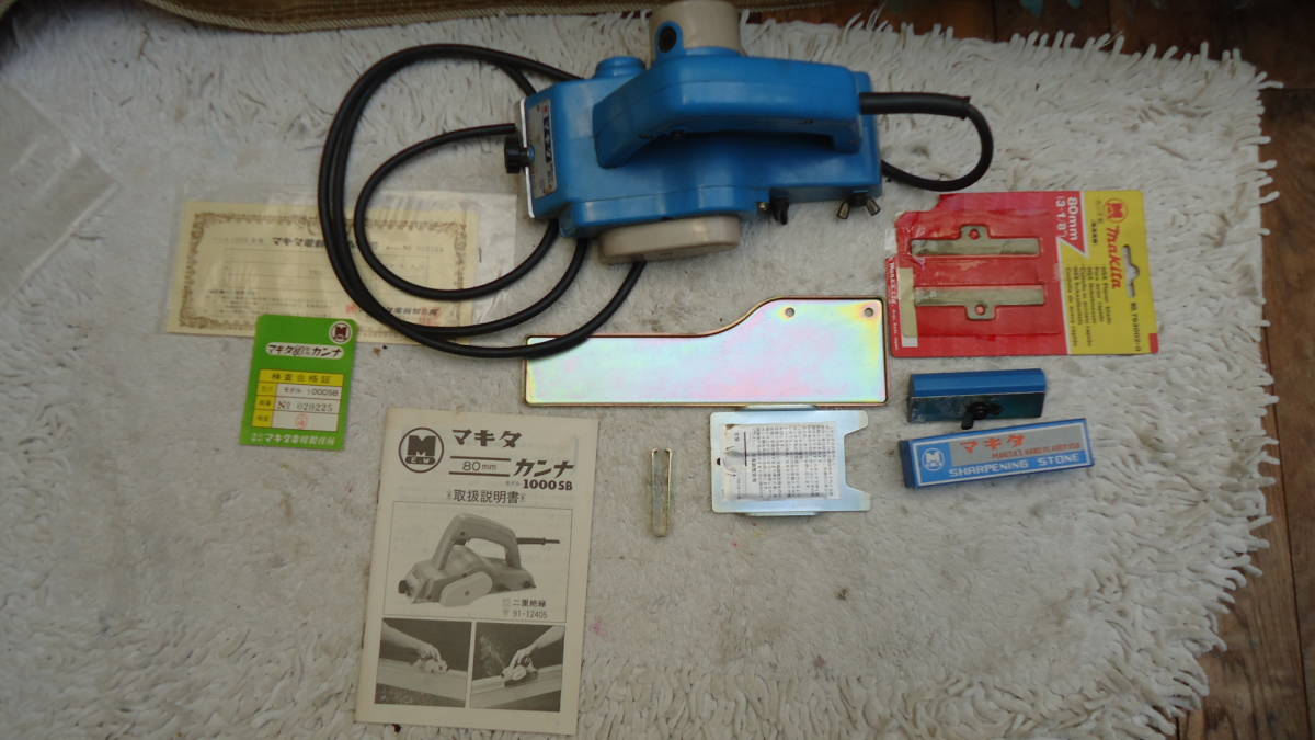 電動 カンナ 1000SB 動作品 マキタ 80mm 研磨砥石、替え刃スペア2枚、取り説付