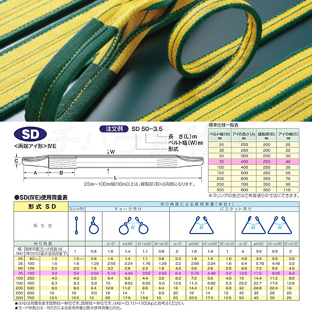 バイタル工業 SD型 Vスリング 幅75×3m 吊ベルト 1本入
