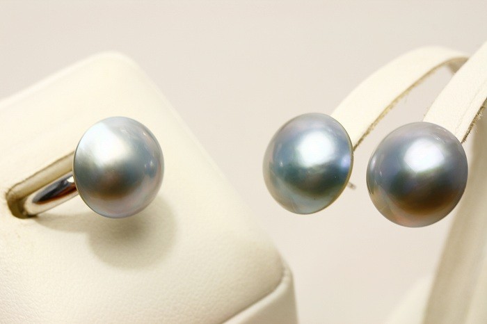 神秘的なブルーカラーに輝くマベパールリング/ピアスセットです。 マベパールとはマベ貝から生まれた半径真珠で主に温かい海で取れます。 片面は特殊な樹脂でコーティングされています。 ボリューム感満点の大粒サイズで美しい色艶が魅力的です。 半径のパールなので身に着けた部分にもフィットいたします。 同サイズの南洋パールなどに比べお求めやすいお値段なのも嬉しいポイントです。 デイリーからパーティーシーンまで大胆に神秘の真珠の輝きをお試し下さい。 | |