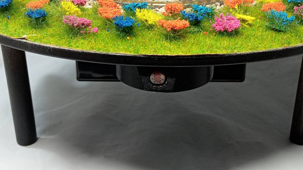 3)電源SWオンで”世界の国からこんにちわ”をMP3再生、手前の光電センサーで再生停止再開