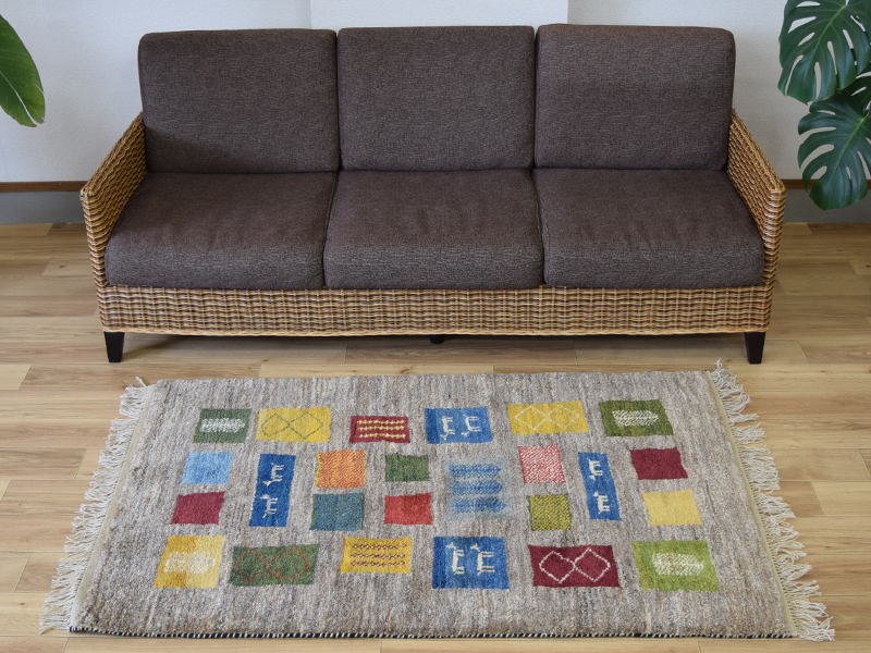 新品 ペルシャ ギャッベ 絨毯 縦1.5m 145 x 95 cm No.P402 肉厚 ウール 手織り ギャベ ラグ マット カーペット マルチカラー カラフル