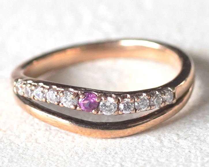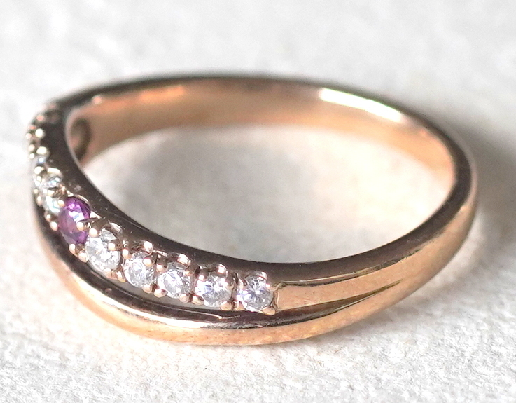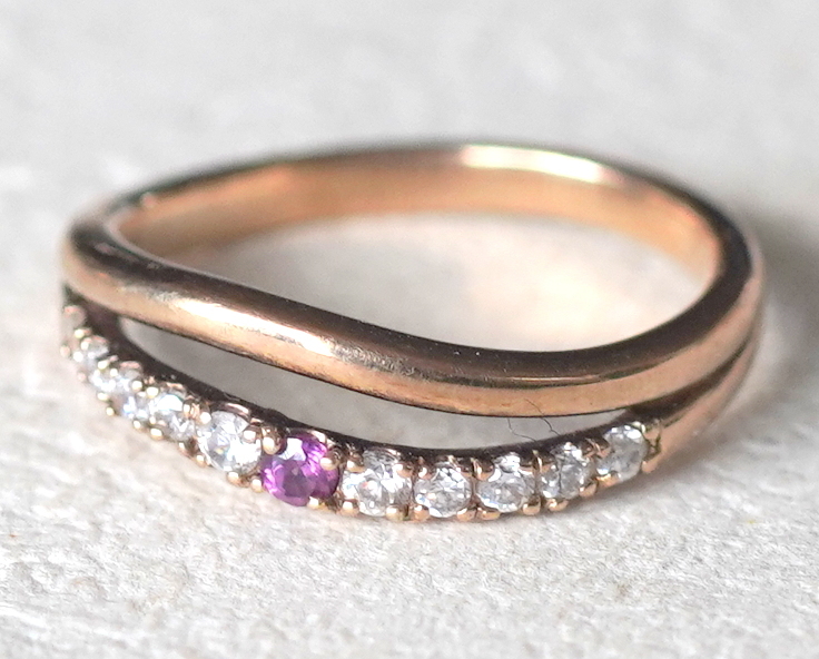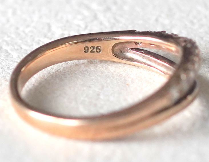 ピンク シルバー925製 ラインストーンとピンクの石付きリング 約10号