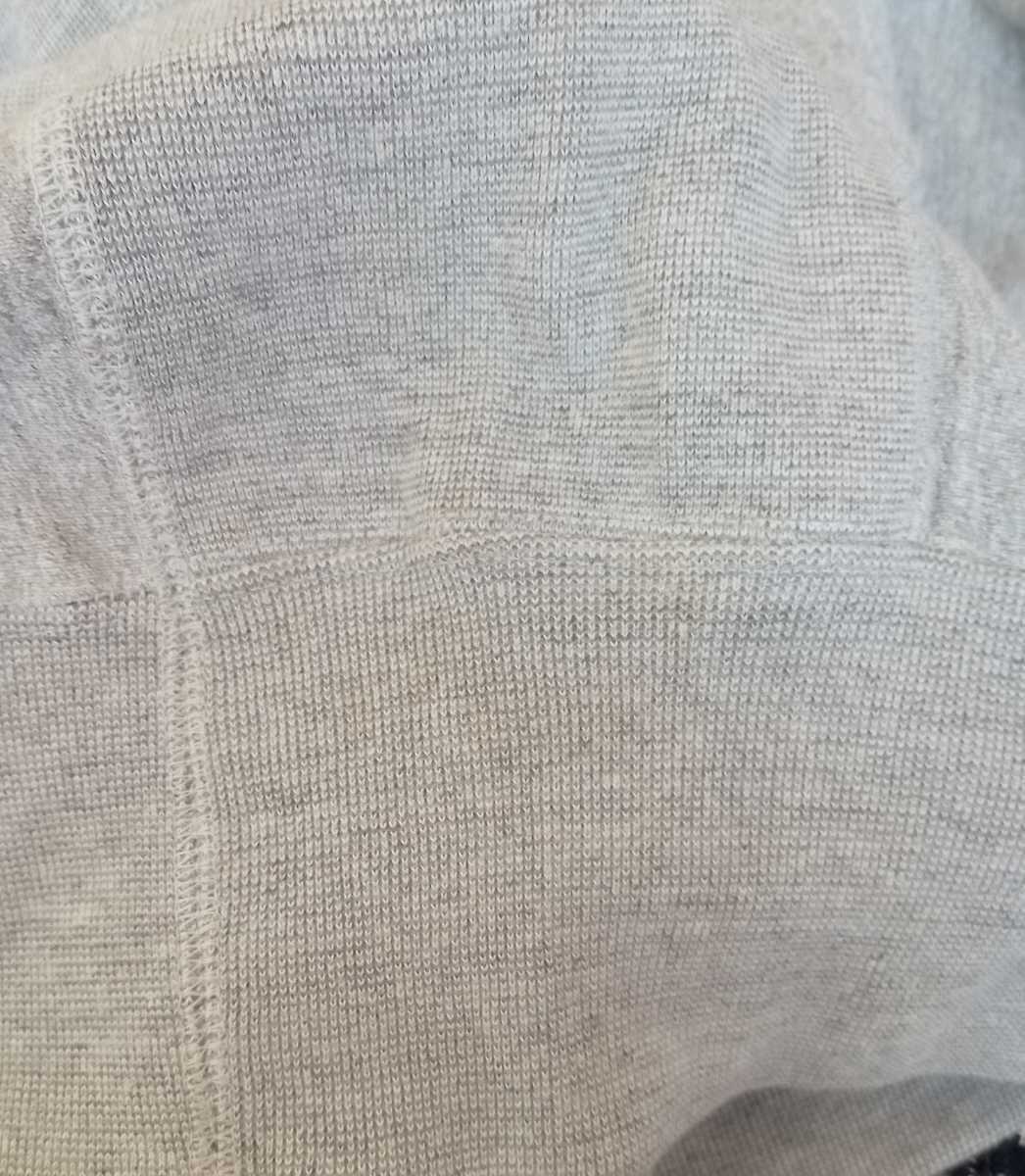 10回ほど着用、よく見ると右サイド裾リブ、右袖、フロント中心辺りに薄くシミがあります。