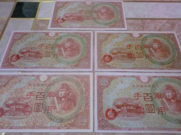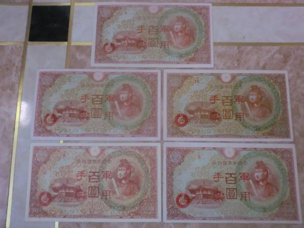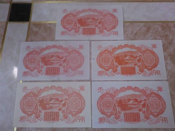 日華事変軍票 丙号(異式)100円を5枚セットです。