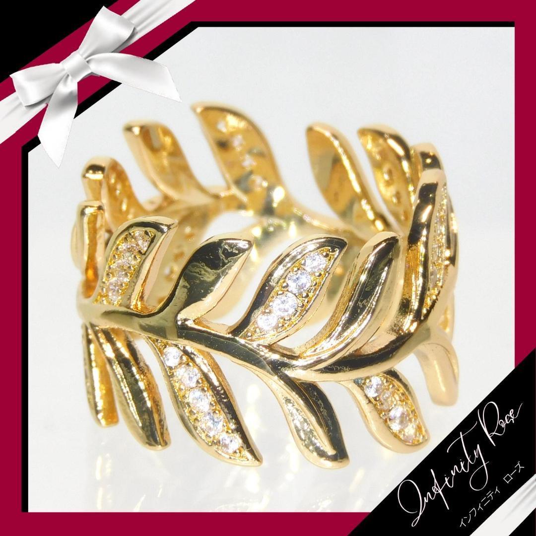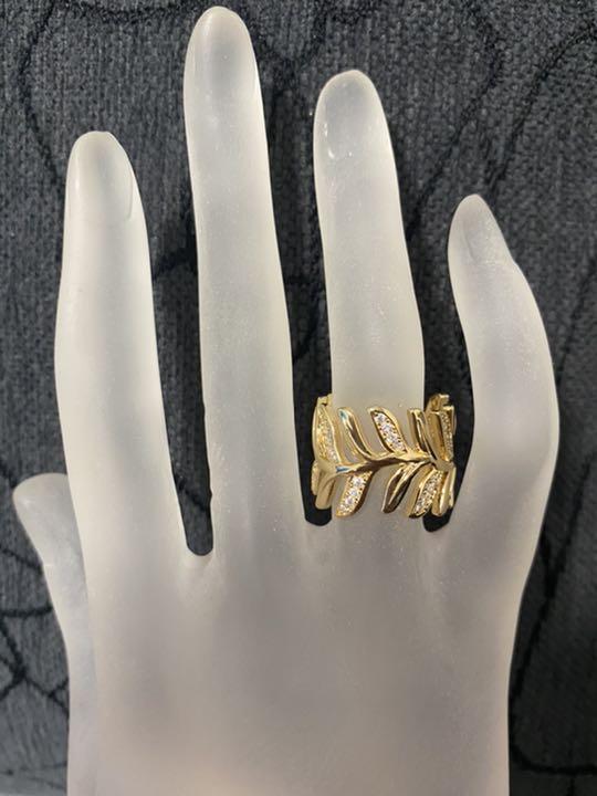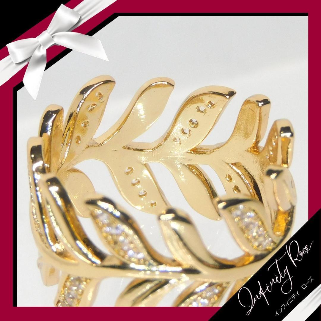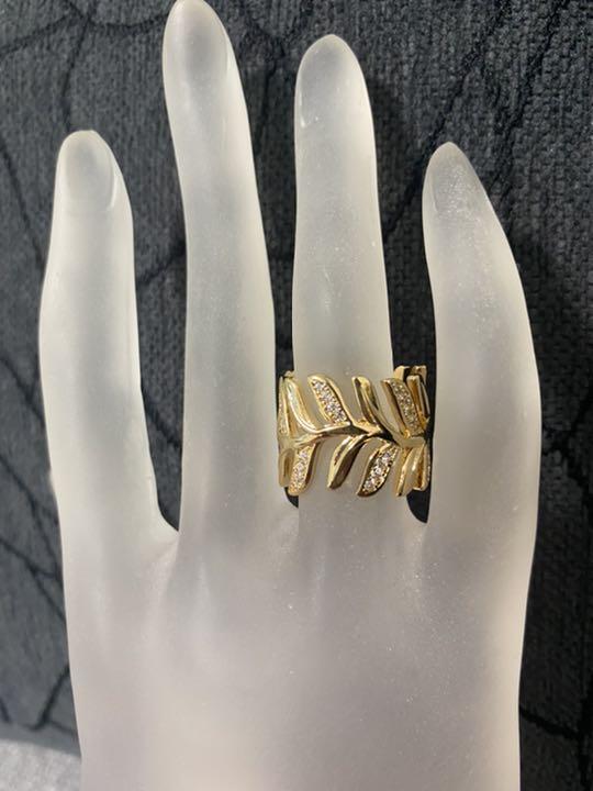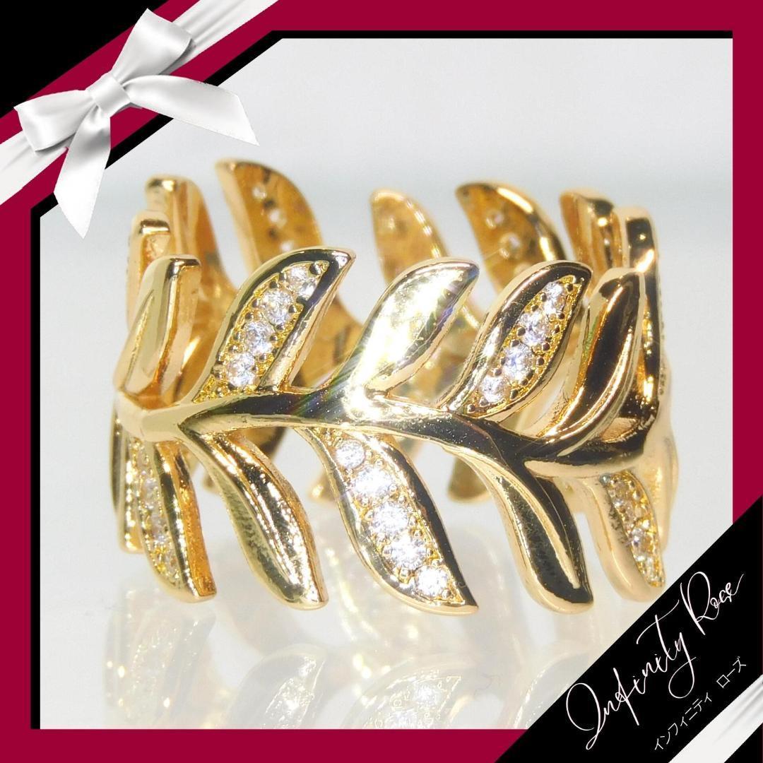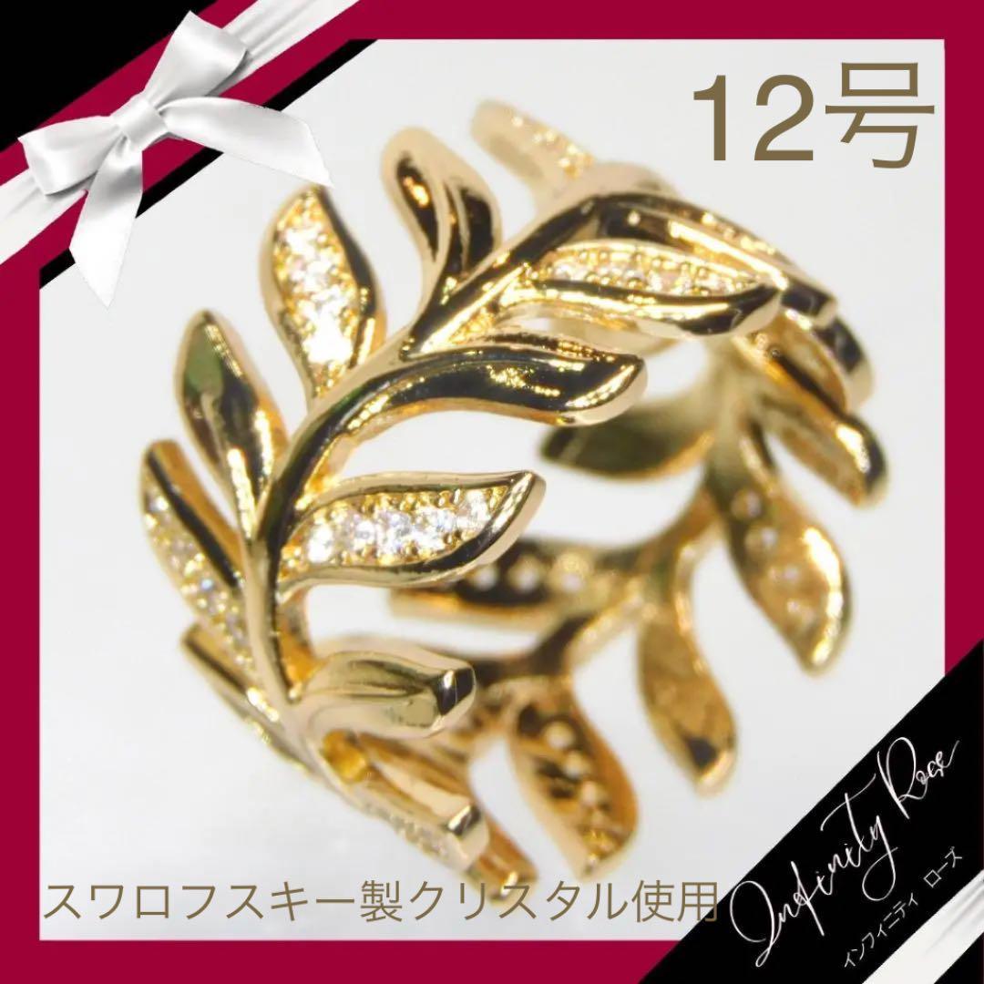 (1120)12号 リーフデザイン豪華無数のクリスタルワイドリング 爪留め指輪 スワロフスキー製クリスタル使用