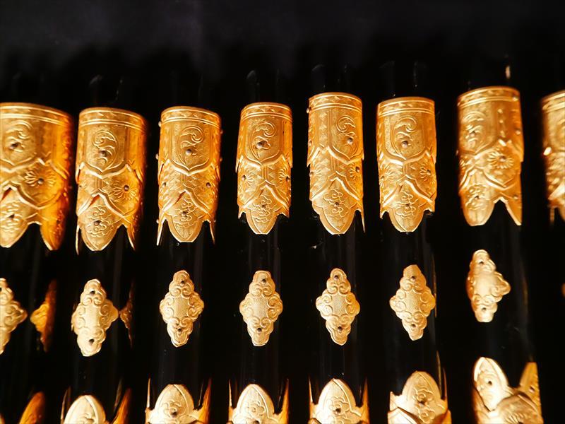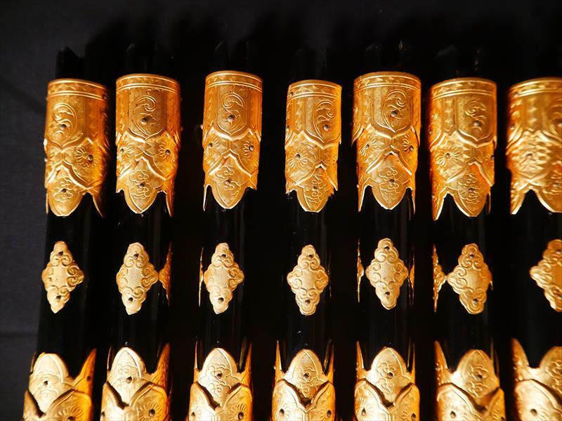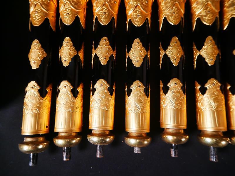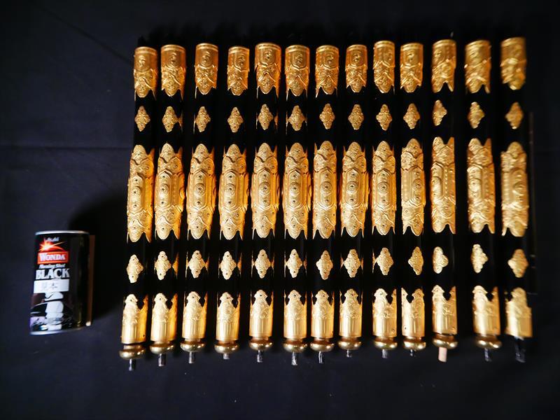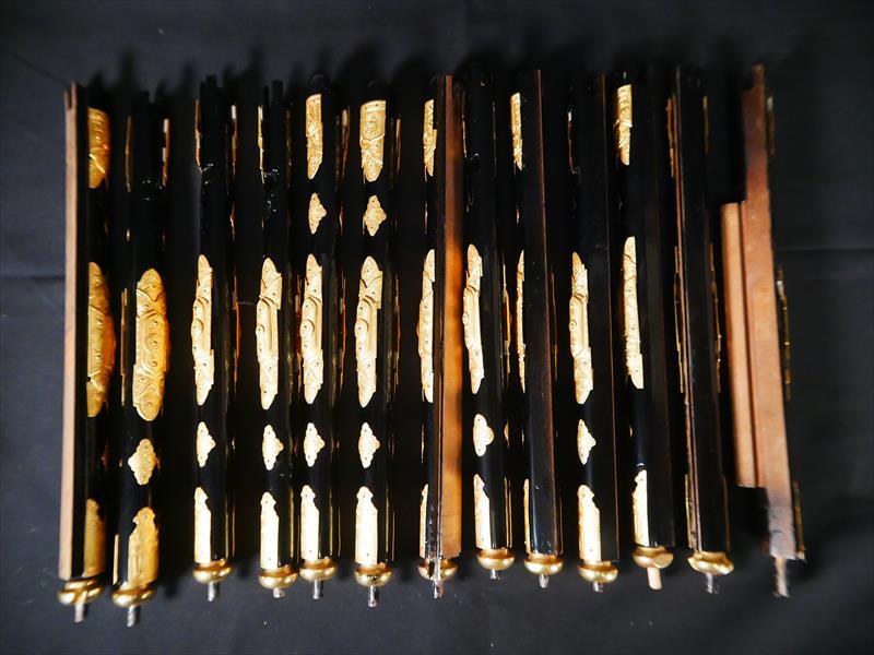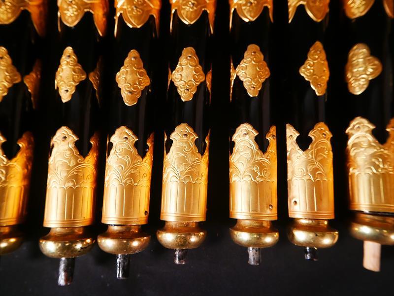 収集品 仏壇用小柱 金具付き 13本 本金箔 長さ38㎝ 一本のみ下部分のパーツがありません。 写真にて確認してください。 Japanese Buddhist Altar Small Pillar Set 13pcs Gold Leaf Fitting L38cm Japanese, Buddhist, Altar Pillar, Gold Leaf, Fitting |