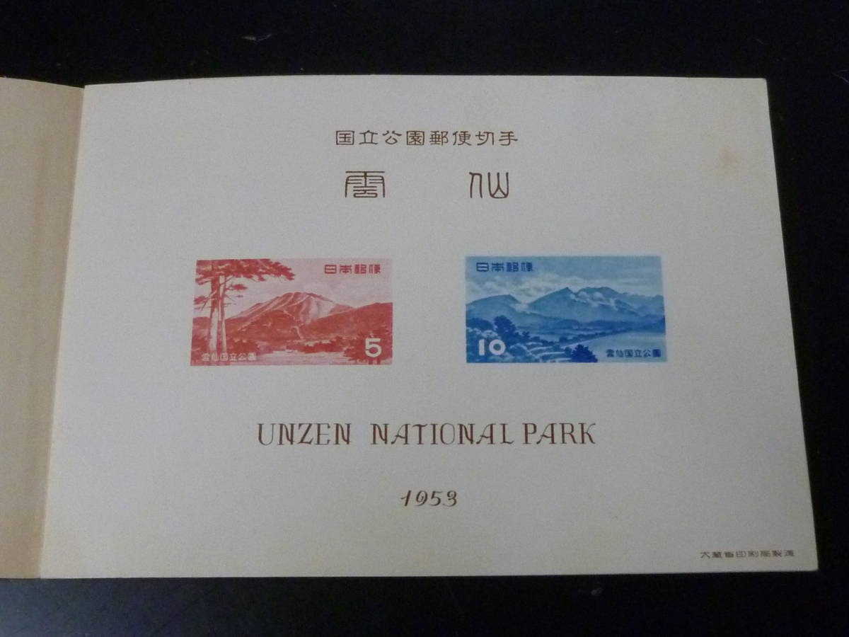 22 P 日本切手 1953年 1次国立 公77 雲仙 小型シート タトウ付 未使用NH、ヤケ有