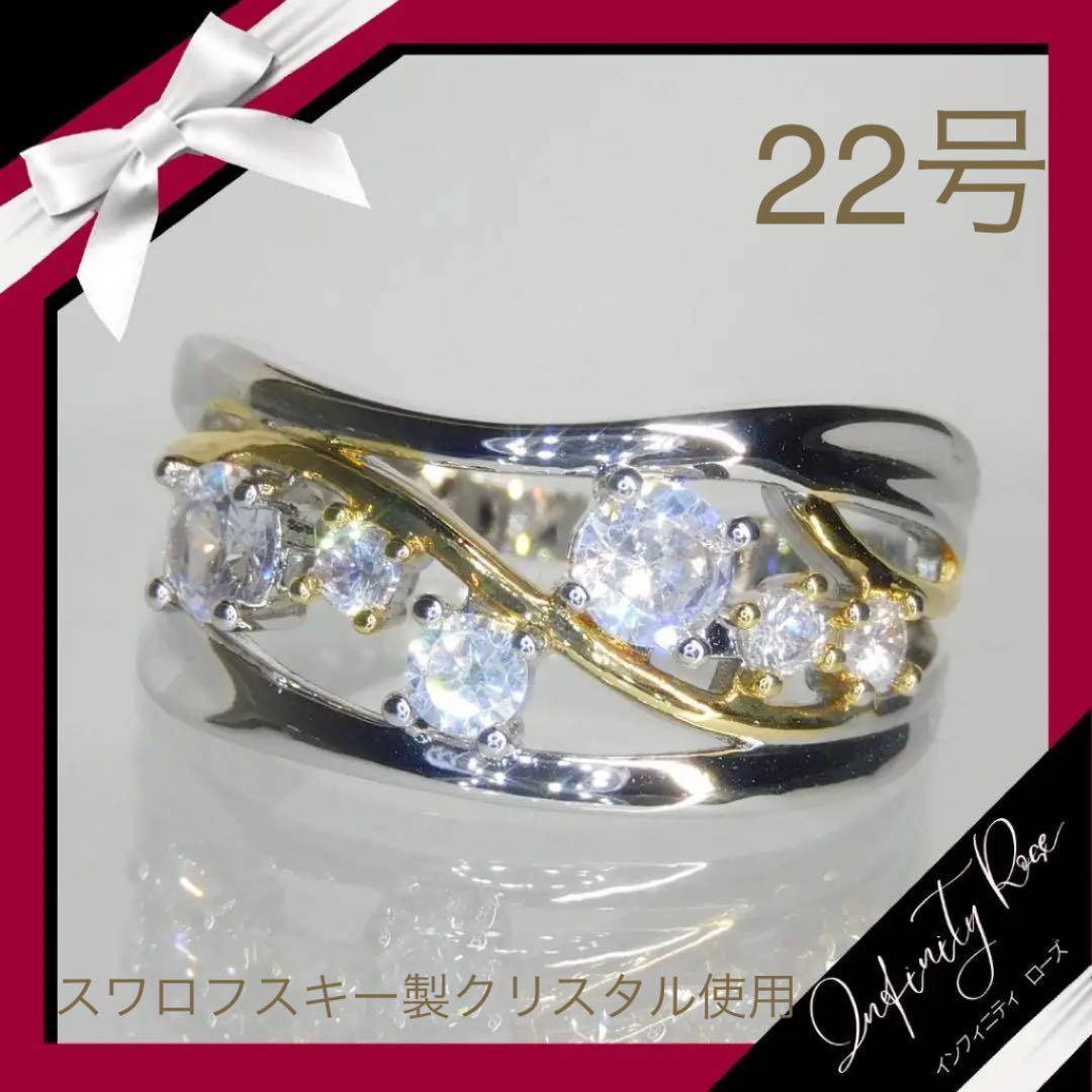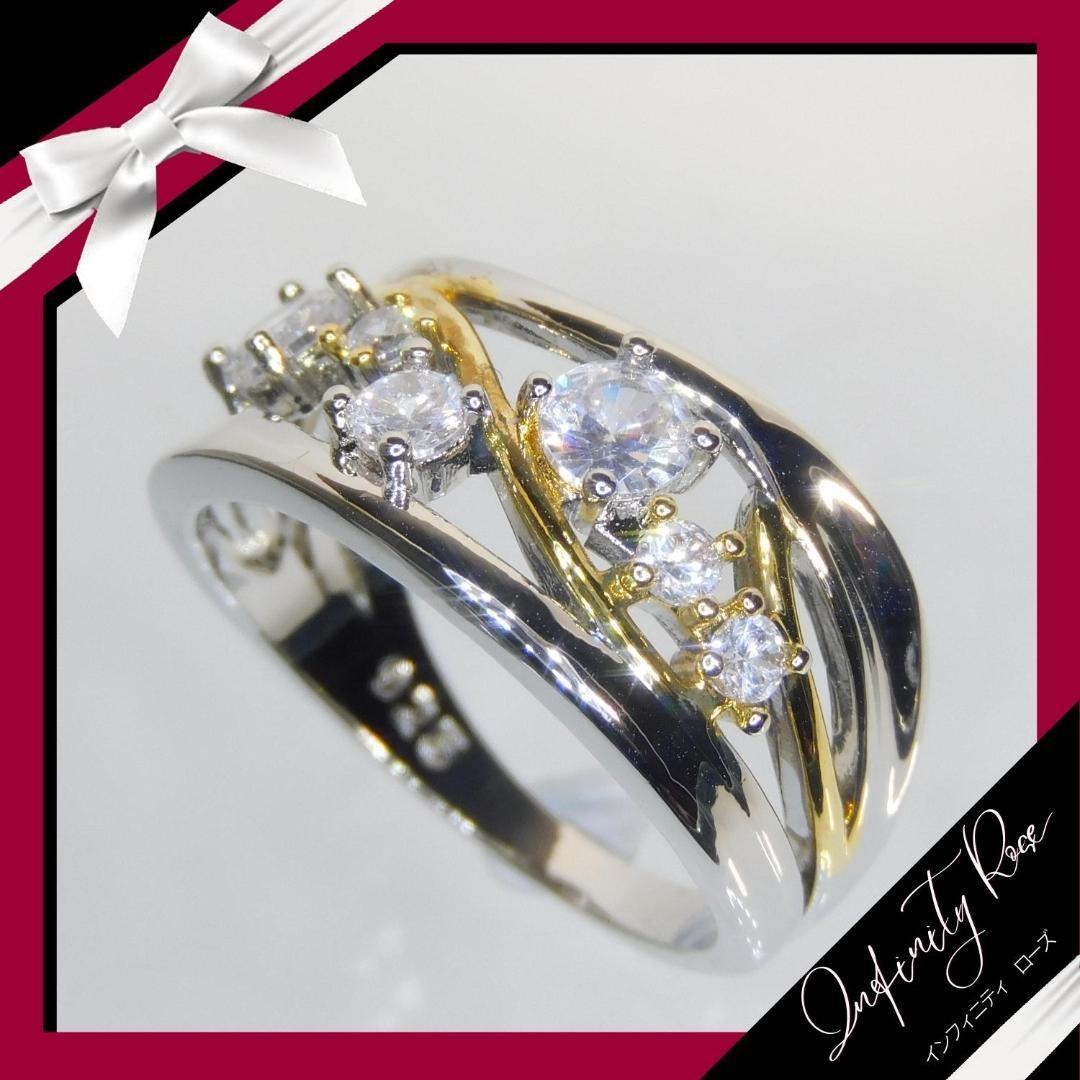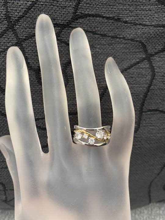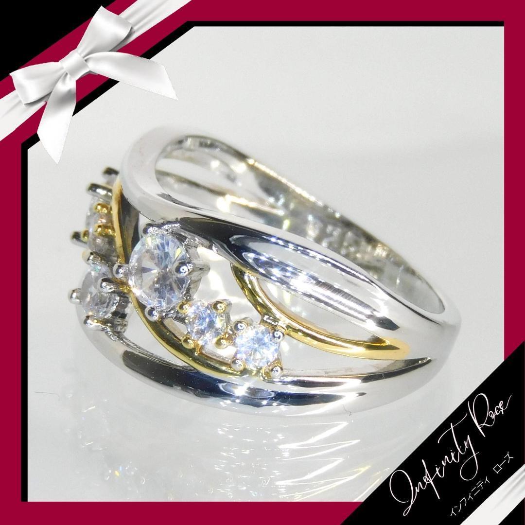 (1024)22号 ゴールド×シルバークリアのシックなシンプルワイドリング 指輪