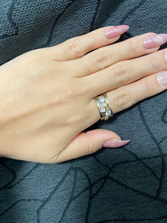 クロスに合わさったデザインがとても美しいリングでございます。お洒落なデザインがどんなお洋服にも合いそうです
