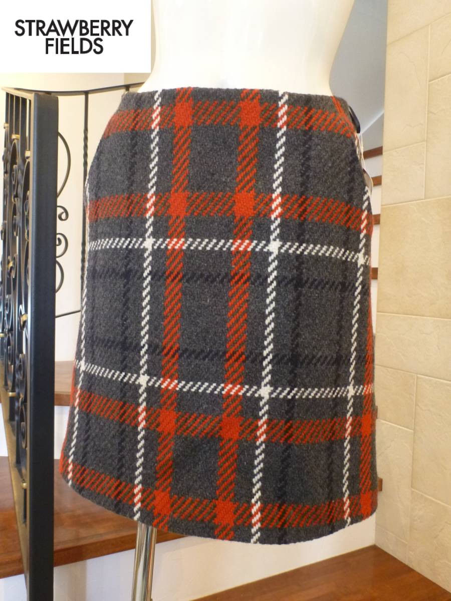 1.7万 新品 STRAWBERRY-FIELDS ストロベリーフィールズ ★赤×グレー×白 チェック柄 スカート 2 M相当