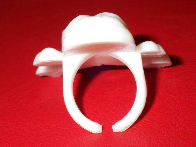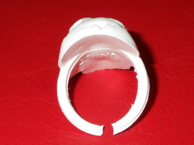 スカル、クロスボーンの素材は少し柔らかいプラスチック、カラーはホワイト、サイズは8号(指周り51.0mm)、柔らかい素材ですのである程度もう少し指周りが大きいサイズの方でも着用可能です♪