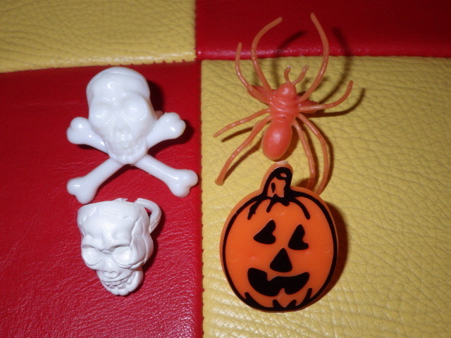 ハロウィン・トイリング(スカル、クロスボーン、パンプキン、スパイダーのお買い得セット)です♪