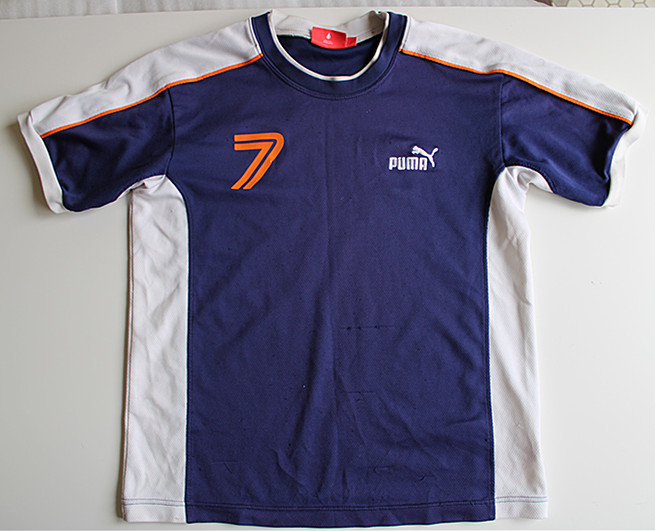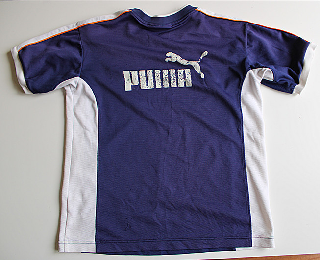 プーマ紺色150, ロゴ刺、ほつれやプリントの剥がれがあります。(写真を参考してください)
