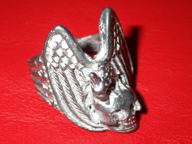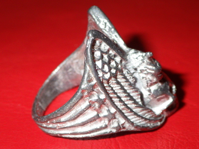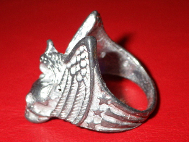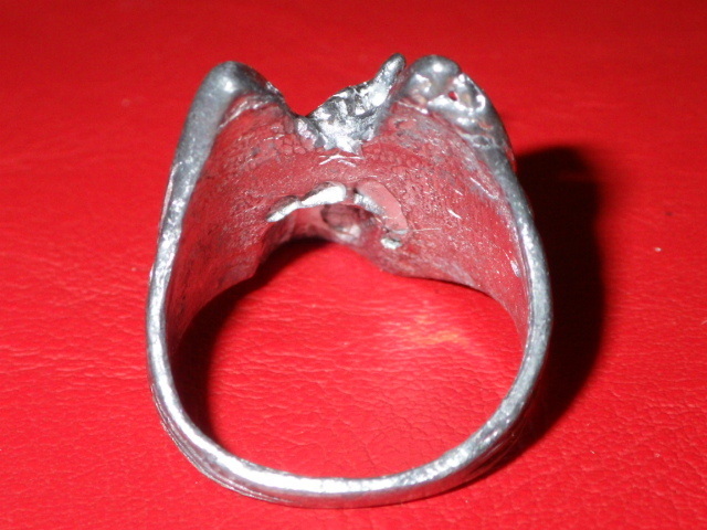 ピューターのような味のあるメタル素材、サイズは18号、指まわり58.6cmくらい、男性向けサイズになります♪