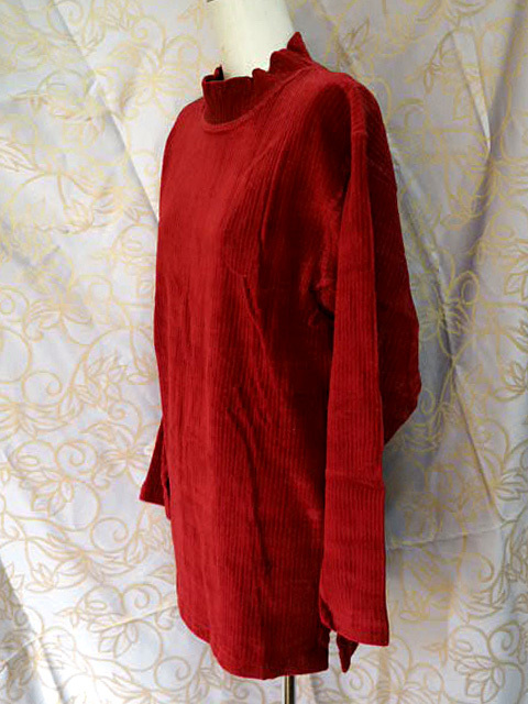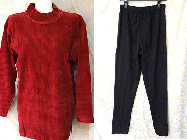 新品未使用 CODE HOUSE コディハウス 赤茶系 F コーデュロイ風合いハイネックトップ&綿パンツ黒・220225