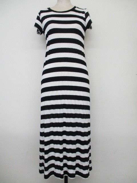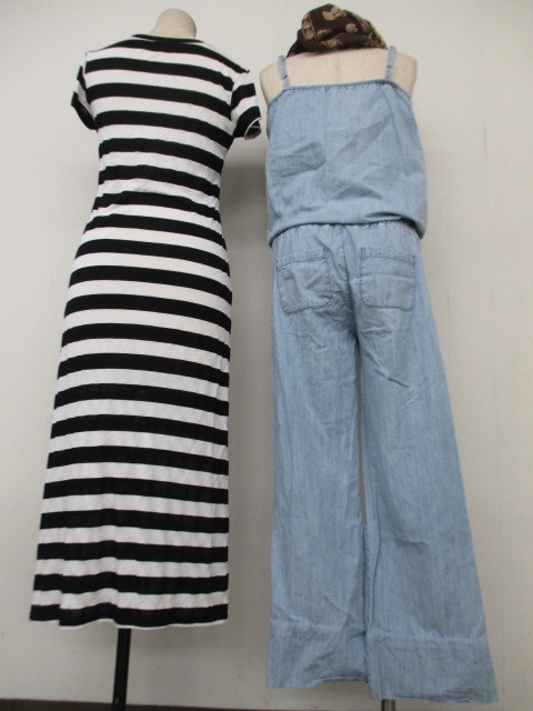 ワンピース&サロペットセット①Musee/半袖Tシャツワンピース/白黒ボーダー/F②angelina/デニムサロペットパンツ