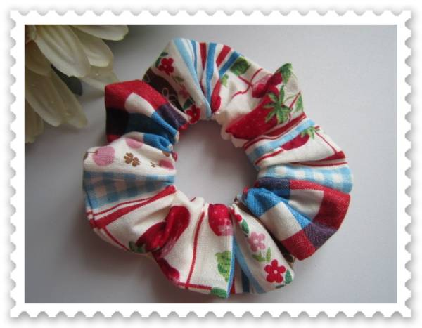 ★シュシュ★ ★イチゴ★パッチ柄★トリコロール系★