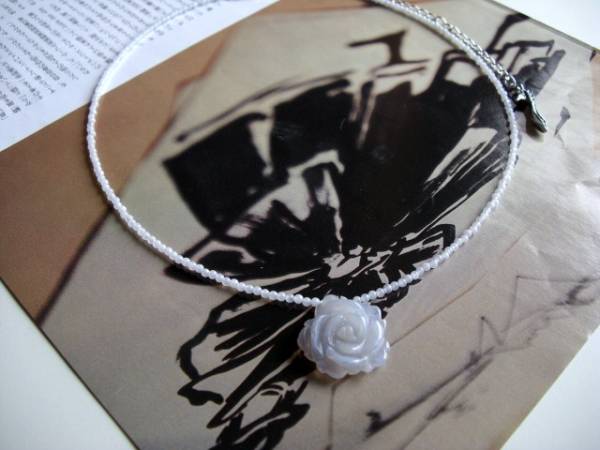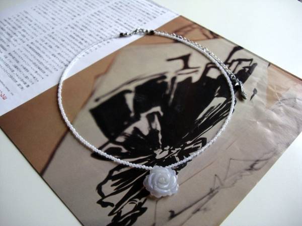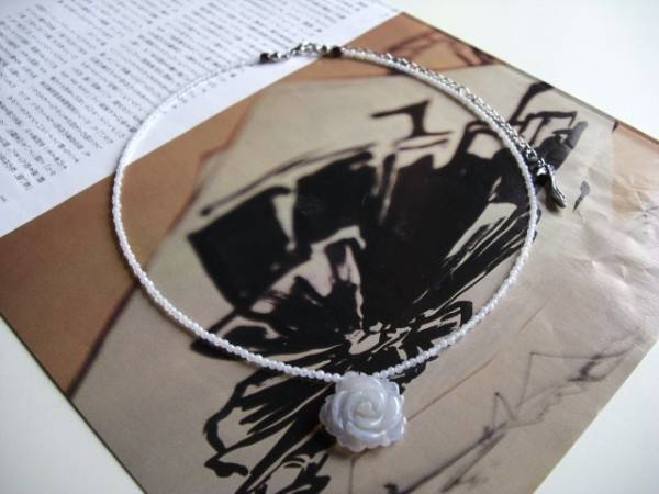 ロマンチックを紡いで・・シリーズです♪水色の薔薇・・繊細なブルーレースのネックレスです♪極小の丸玉のブルーレースにカルセドニーの薔薇を合わせて可憐な表情です♪3ミリ位の丸玉のブルーレースに20ミリ位のカルセドニーの薔薇を合わせました♪長さは42センチ+アジャスター13センチで最長55センチ位です♪お揃いのブレスレットも出品しています♪シンプルで長く着けていただけるデザインを考えて作りました!ハンドメイドをご理解頂いてノークレーム、ノーリターンでお願いします