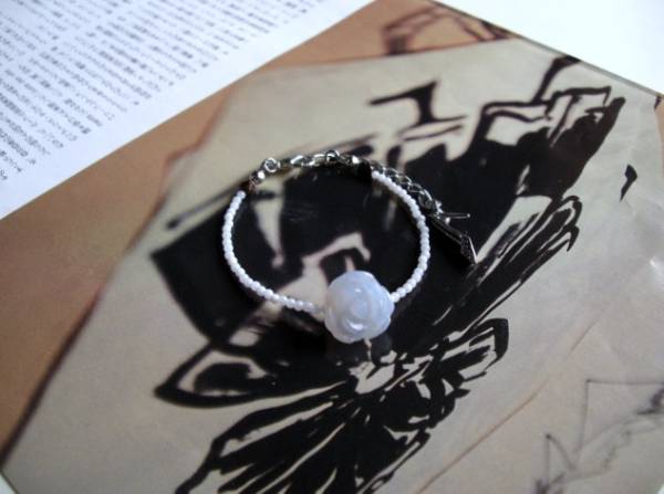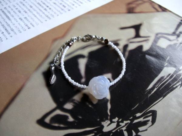 ロマンチックを紡いで・・シリーズです♪水色の薔薇・・繊細なブルーレースのブレスレットです♪極小の丸玉のブルーレースにカルセドニーの薔薇を合わせて可憐な表情です♪3ミリ位の丸玉のブルーレースに15ミリ位のカルセドニーの薔薇を合わせました♪長さは16センチ+アジャスター6センチで最長22センチ位です♪お揃いのネックレスも出品しています♪シンプルで長く着けていただけるデザインを考えて作りました!ハンドメイドをご理解頂いてノークレーム、ノーリターンでお願いします