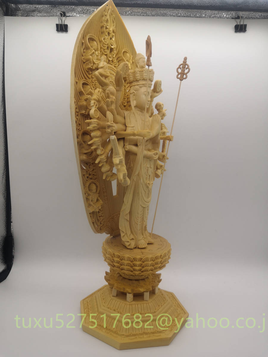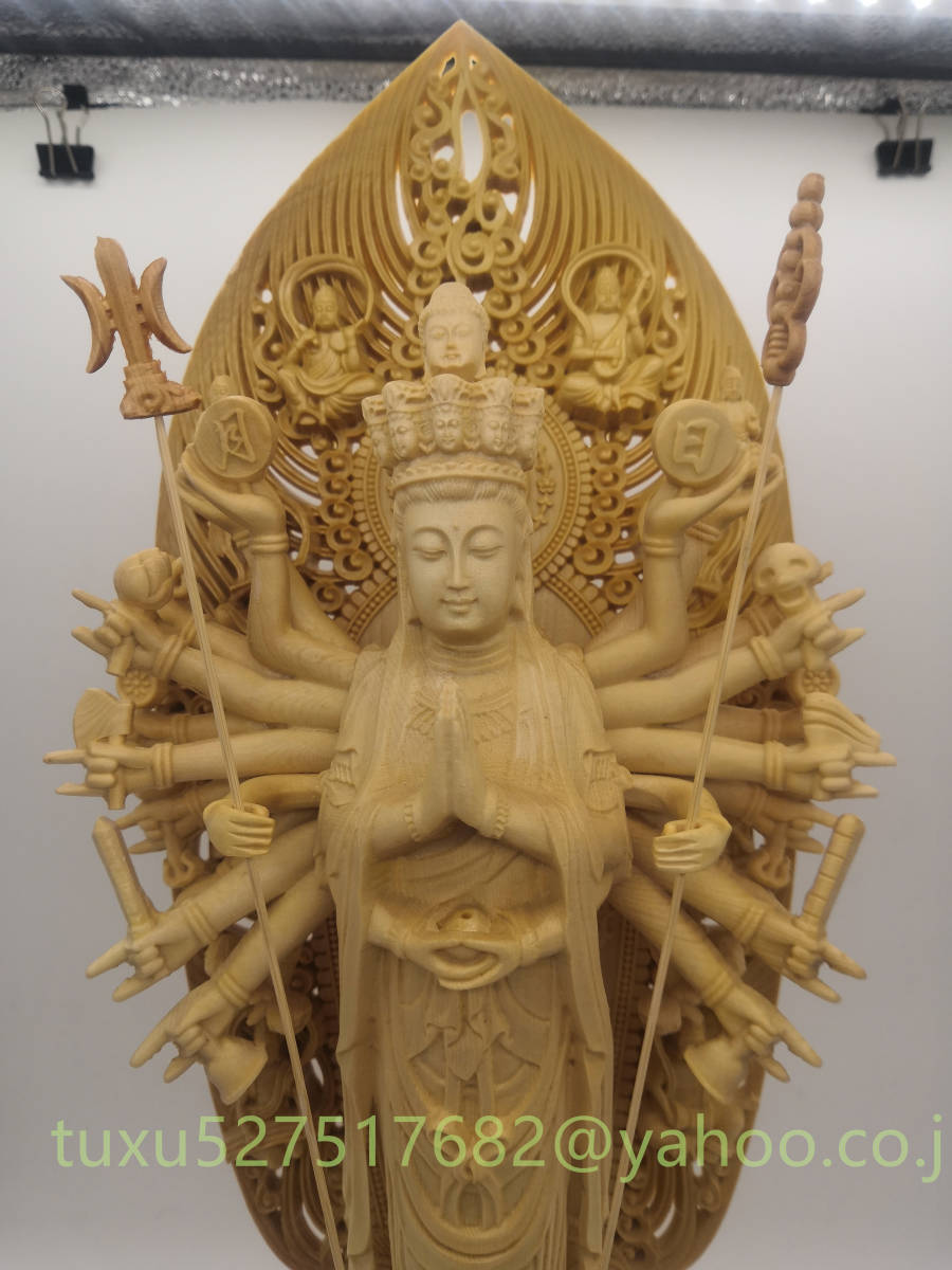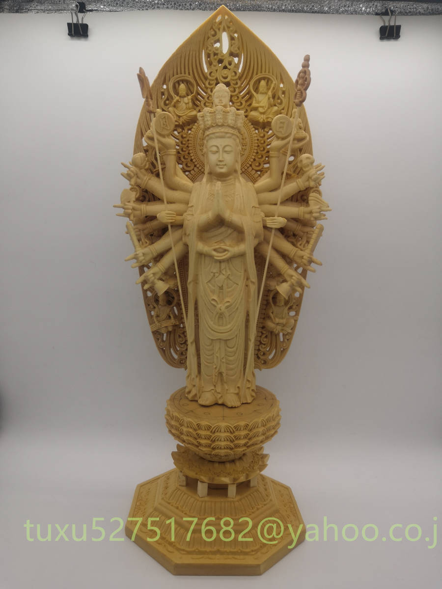 極上品 総檜材 千手観音 千手観音菩薩 仏教美術 精密彫刻 仏像 仏師で仕上げ品 観音菩薩 大型43cm