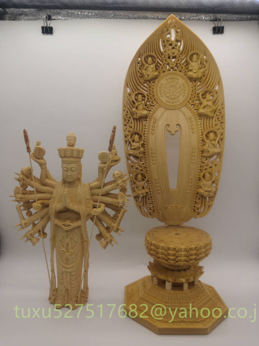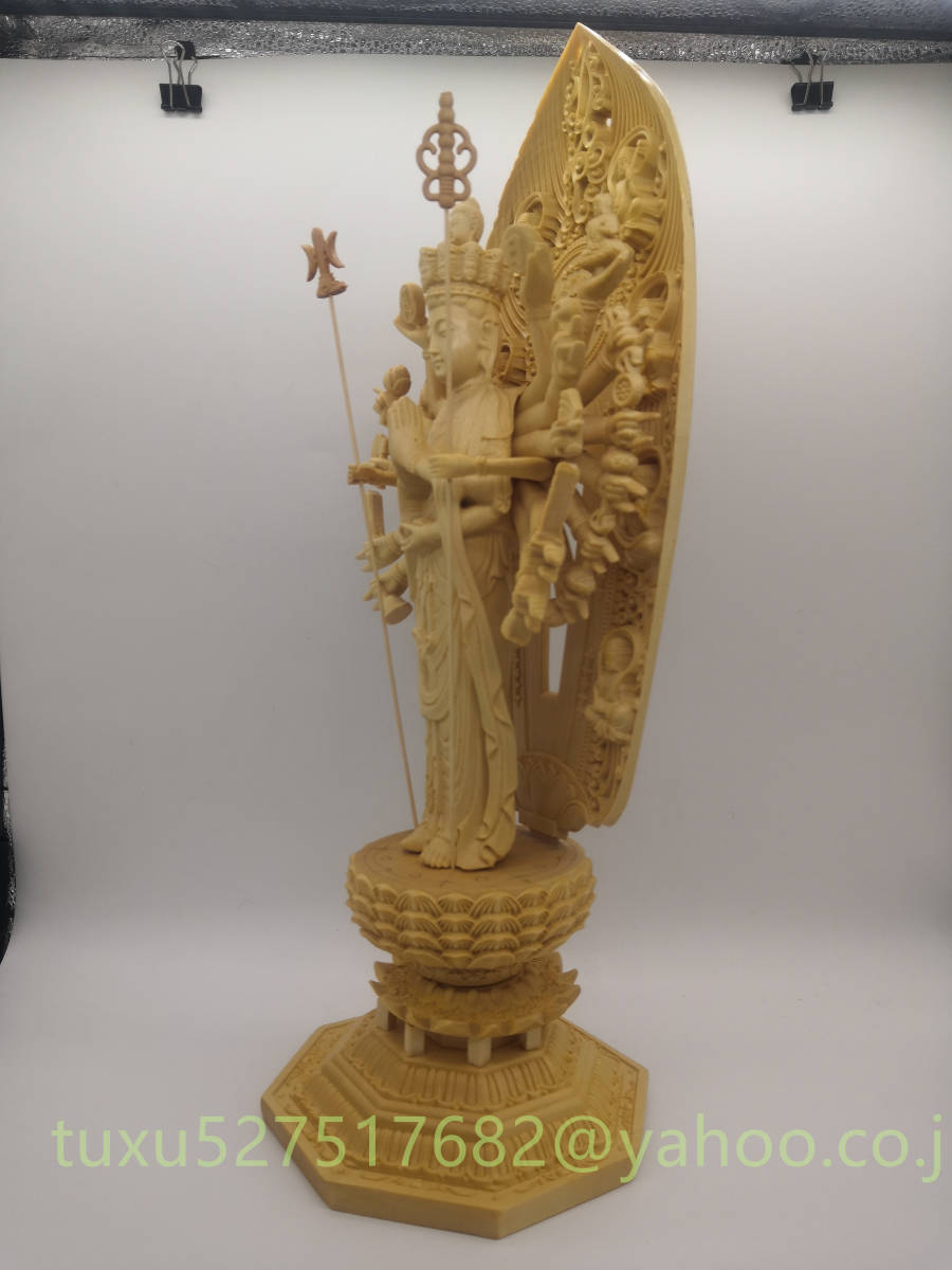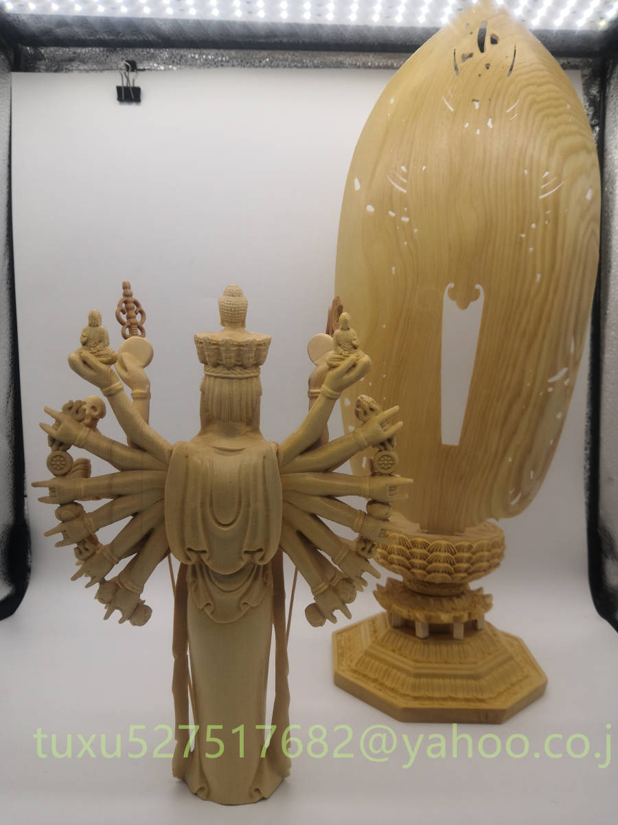 極上品 総檜材 千手観音 千手観音菩薩 仏教美術 精密彫刻 仏像 仏師で仕上げ品 観音菩薩 大型43cm