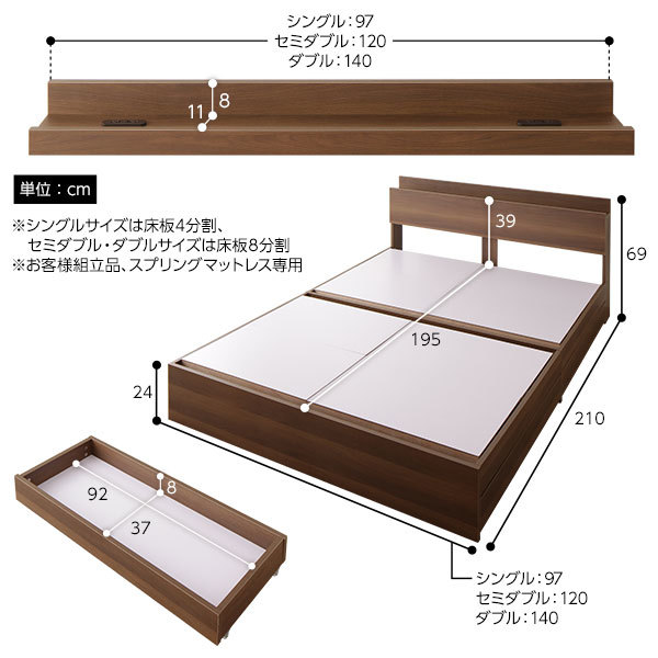 ベッドフレームには必ずスプリングマットレスを乗せてご使用ください。