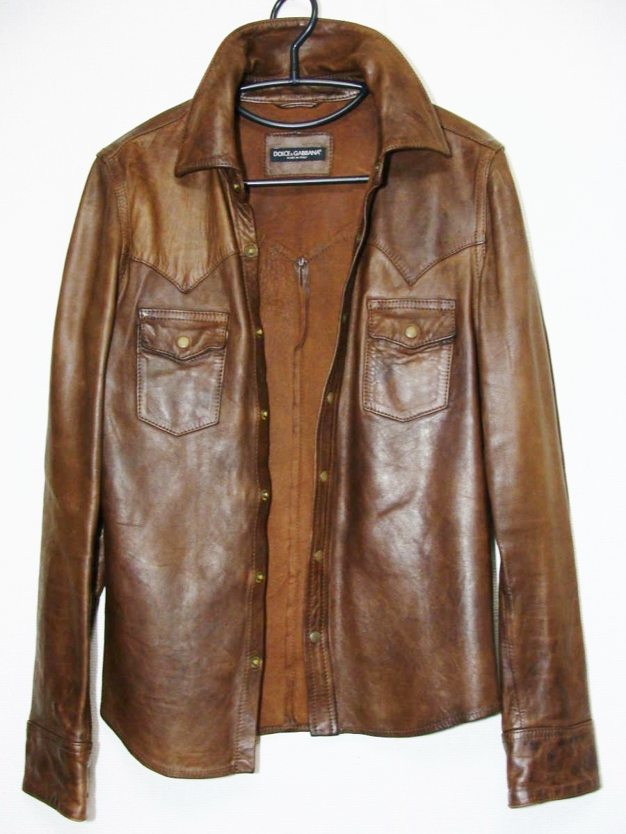 Dolce&Gabbana ドルチェ アンド ガッバーナ ◇ シープ スキン 羊 皮 革 レザー シャツ ジャケット ◇ スナップ ボタン ウエスタン 斑 染め