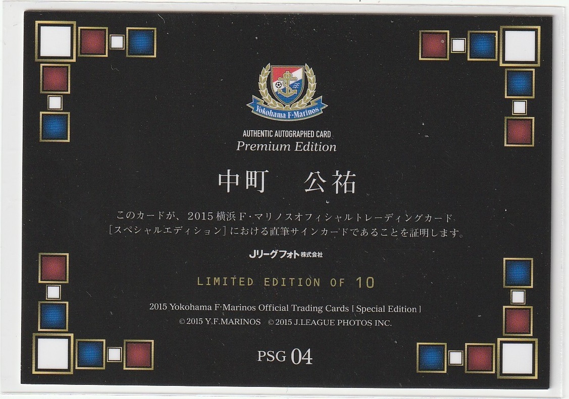 【中町公祐】2015 横浜F・マリノス スペシャルエディション 直書き金サインプレミアム直筆サインカード[Limited edition of 10]