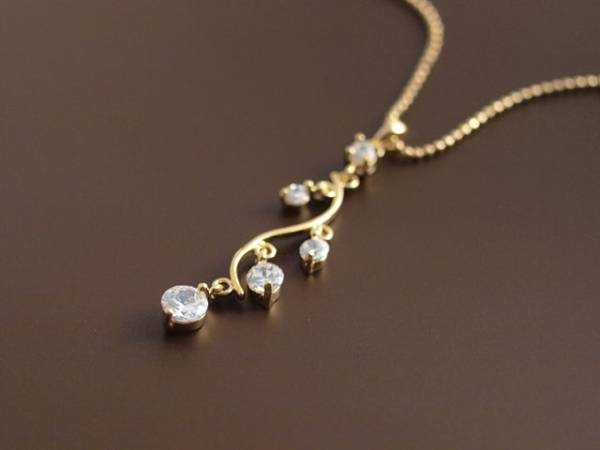 胸元で揺れるダイヤモンドCZの輝きが上品なネックレスです。