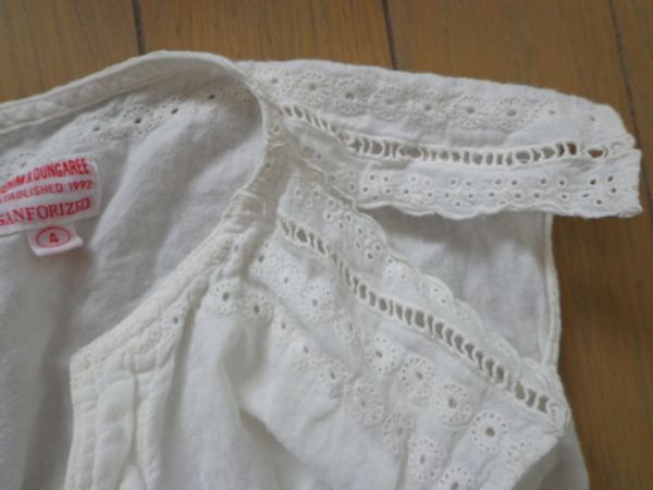 商品説明 デニムダンガリー★おしゃれな薄手の白い半袖、重ね着に★4歳