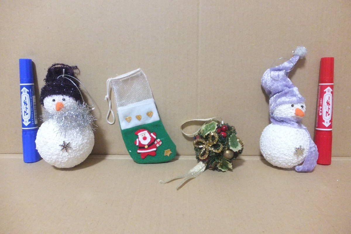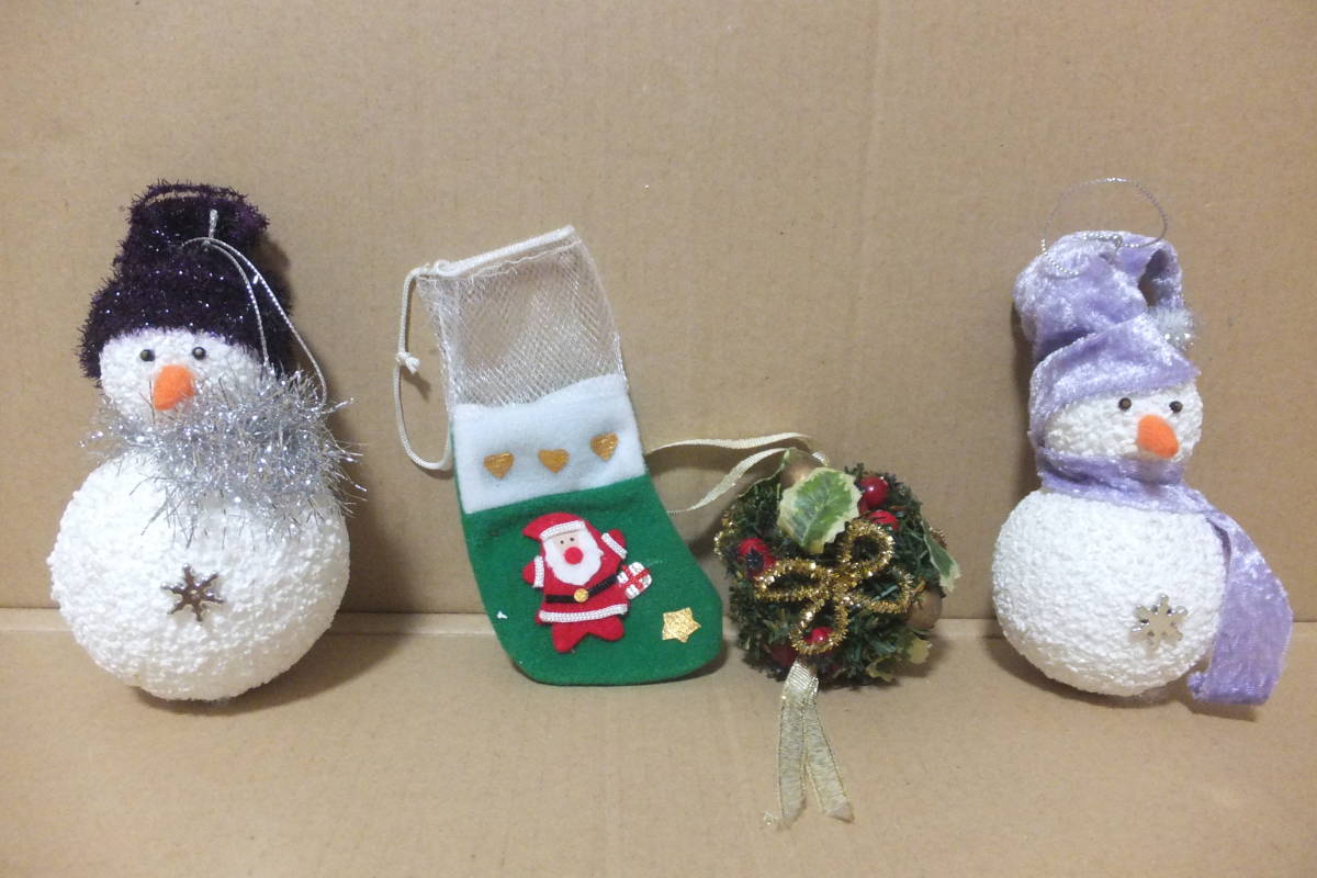 中古 【クリスマスツリー オーナメント 4点】 雪だるま 2点、靴下、松ぼっくり(?) 飾り付け | |
