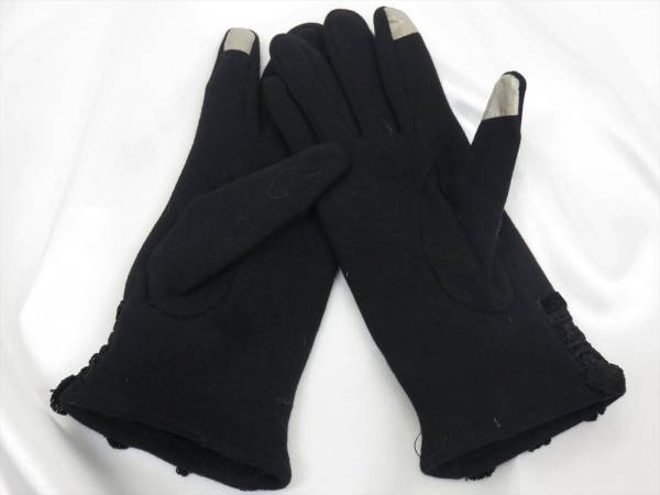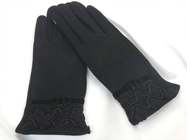送料無料 レディース手袋 スマホ対応 裏起毛 ブラック レース 黒