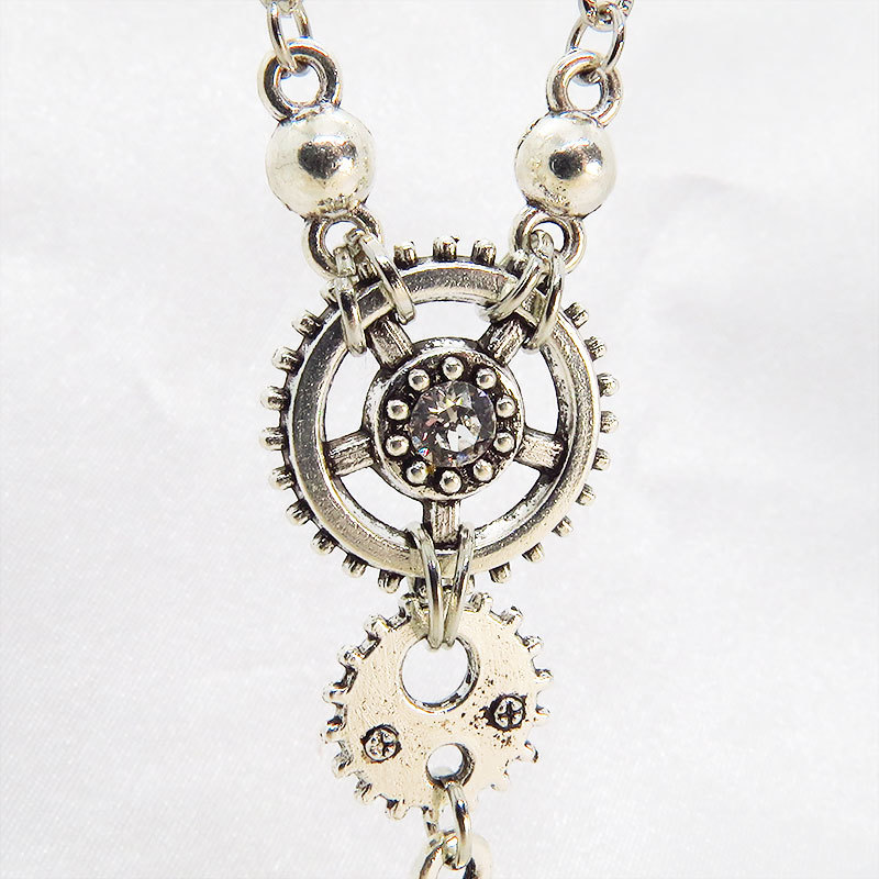 アンティークシルバーに輝く、スチームパンクなデザインのネックレスです