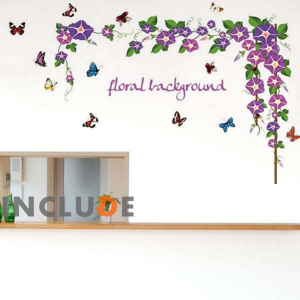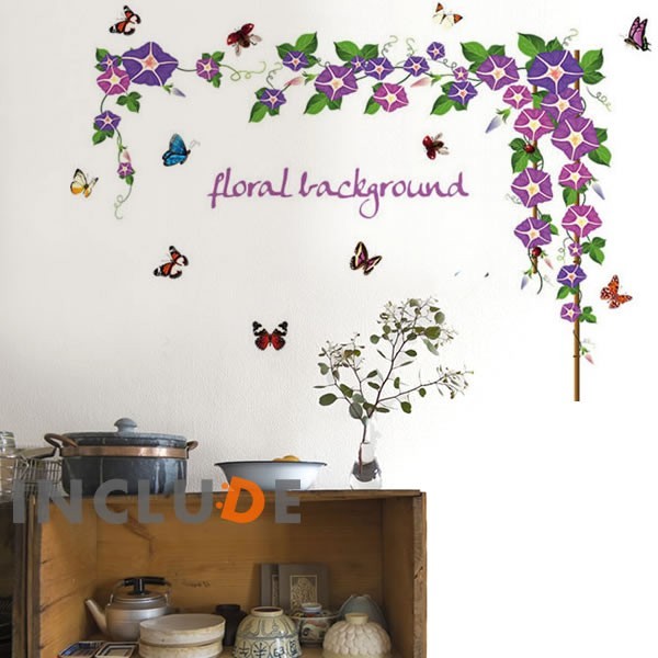 ウォールステッカー 朝顔 紫 ラバーズ 木 葉 リーフ 癒し ウォールアート アイビー グリーン イングリッシュアイビー