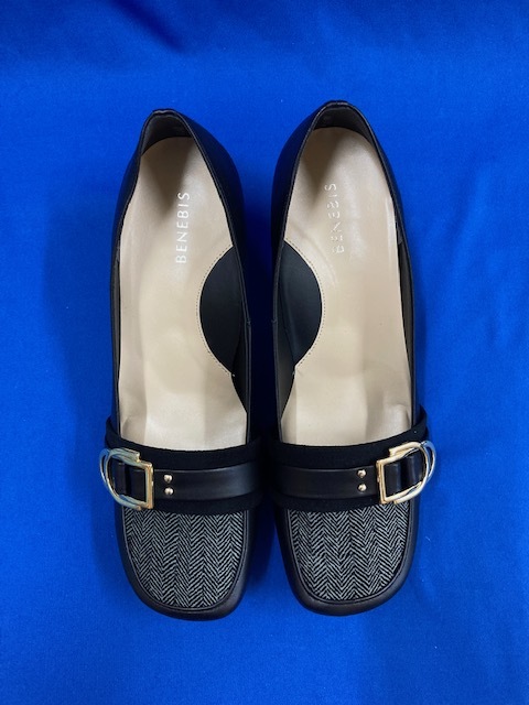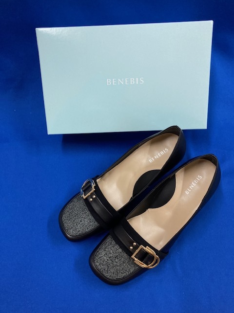 新品・未使用 (正規品) 定価:13900円(税込) ■カラー ブラック ■サイズ: 22.0cm ワイズ: 3E ■素材 牛革、合成底 ■ヒール高さ約6.0cm 足指の自然なラインに沿った形状のトウで、ゆったり履けるのも魅力です。 ◆BENEBIS(ベネビス) 30年以上支持されている 「足にやさしい」と「美しい」 を叶える がコンセプトのベルメゾンオリジナルブランド。 お客様の生の声を大切にしながら、女性の足に「やっと出会えた」と喜んで頂ける履き心地をお届けしています。 | ||||||||||||||||