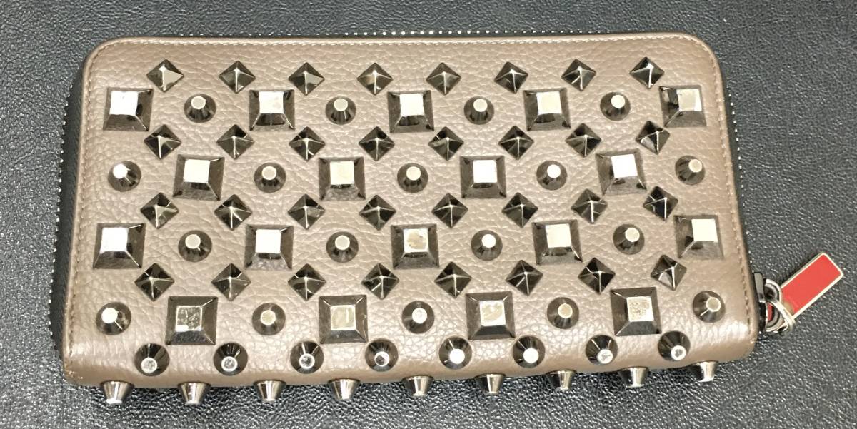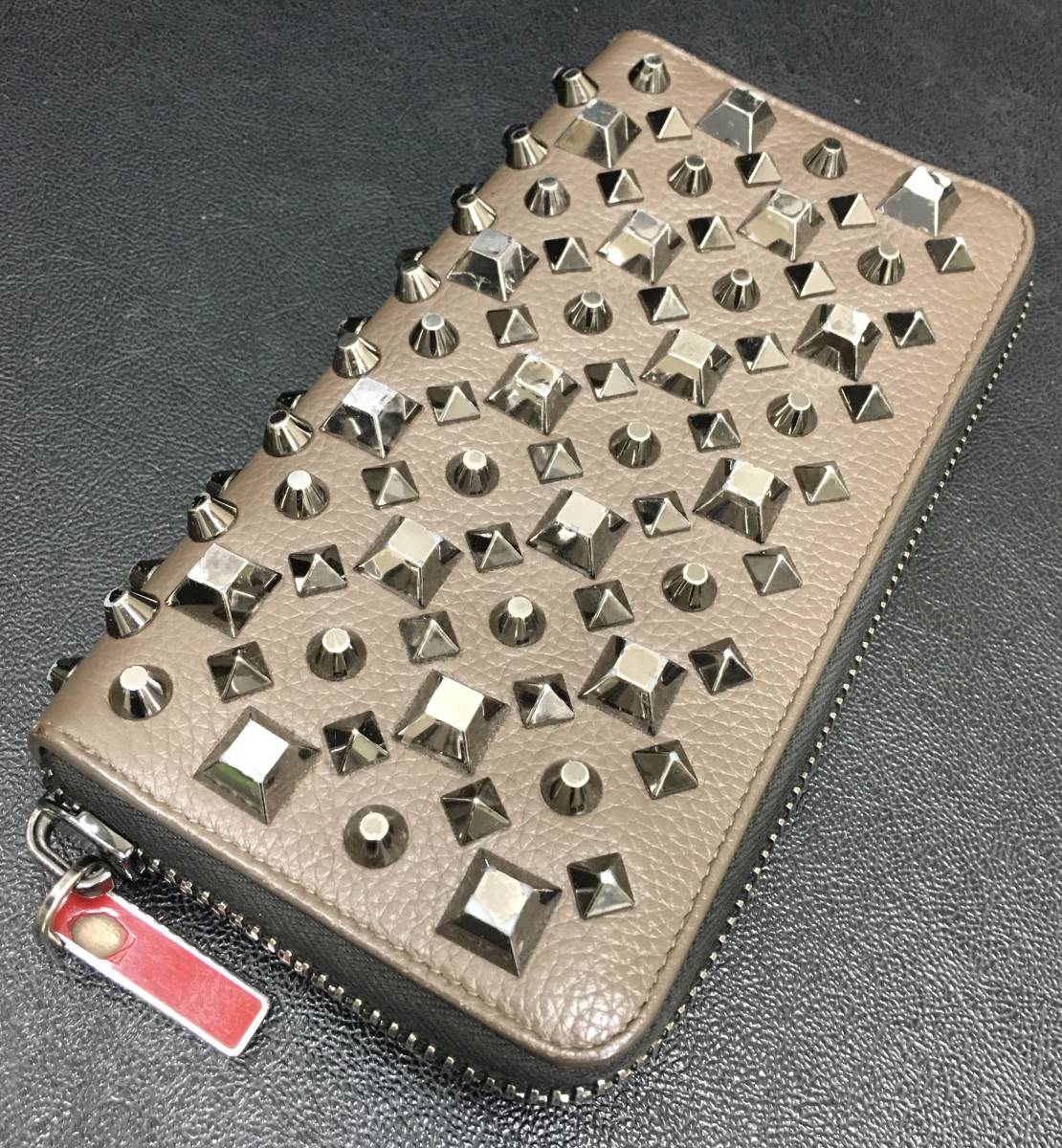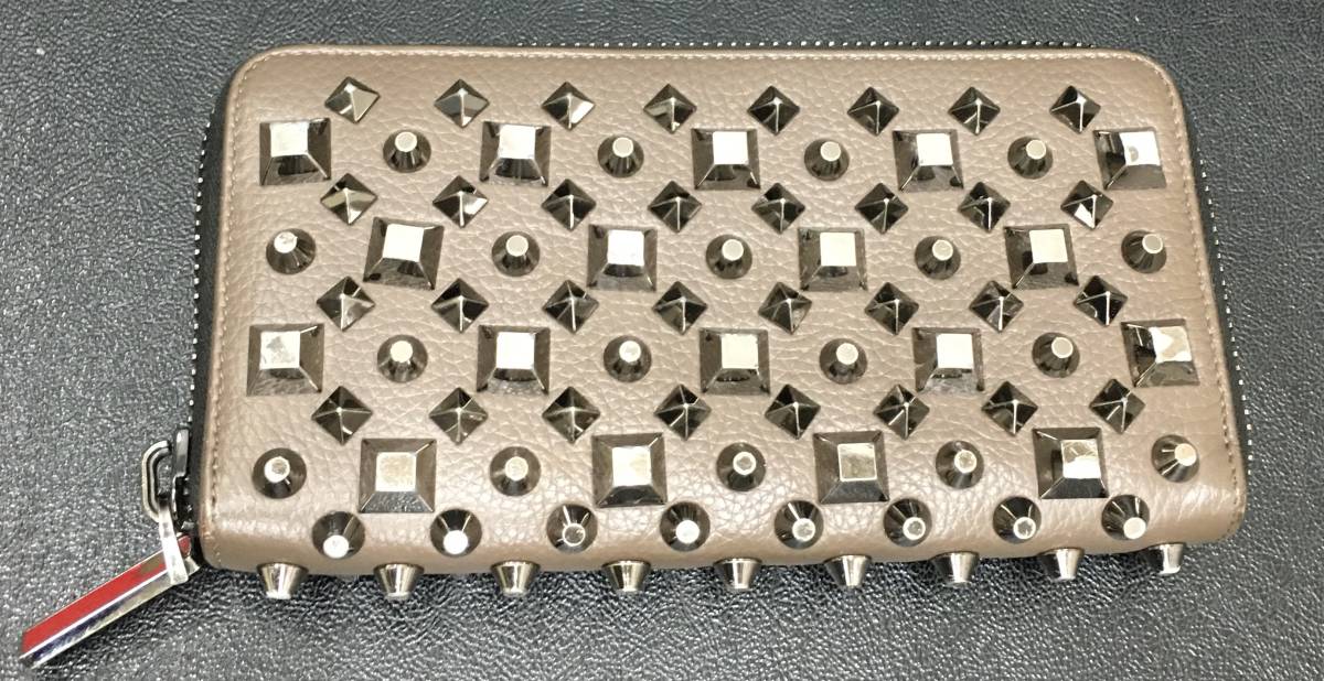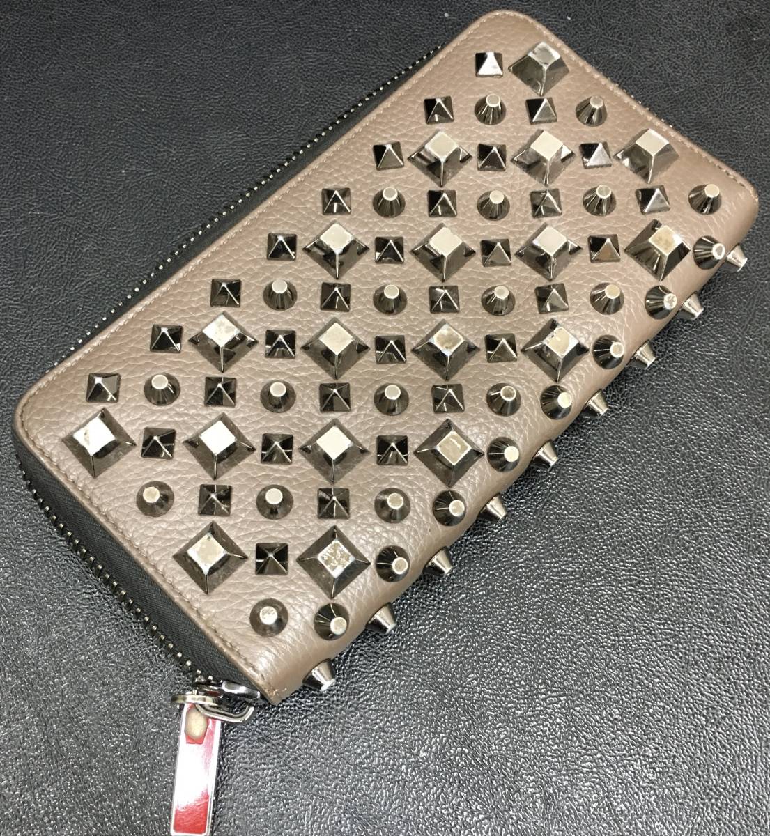 Christian Louboutin クリスチャンルブタン ラウンドファスナー長財布 スタッズ 鋲 ブロンズ
