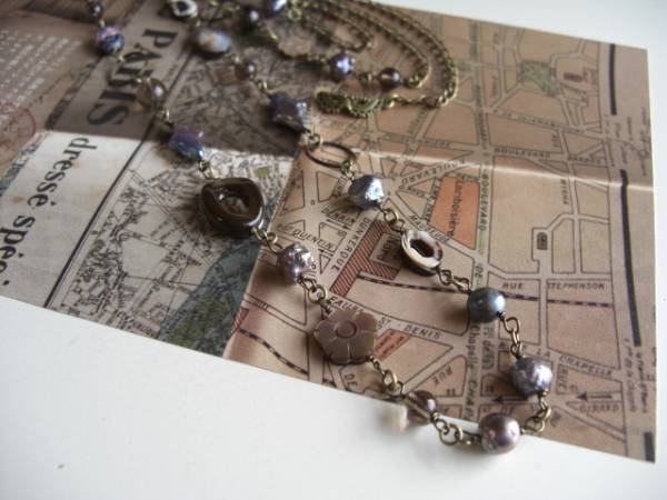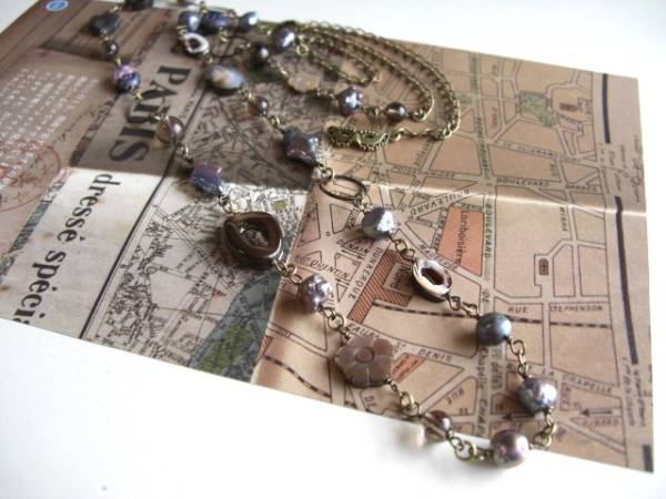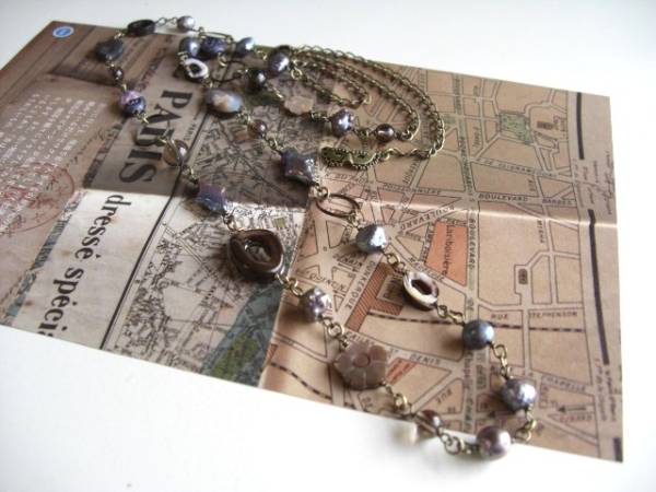 恋する人・・シリーズです♪シルクロードの旅・・シックなグレー色の淡水パールのネックレスです♪6ミリから14ミリ位までのポテトやバロック、クロスなどのデザイン違い、大きさ違いの淡水パールにリングやお花やオーバルカットの黒蝶貝やチェコのデザインビーズやスモーキークォーツを合わせてオリエンタルな表情です♪長さは全長88センチ位です♪長さ違いのネックレスやブレスレットも出品しています♪シンプルで飽きのこないいつまでも着けられるデザインを考えて作りました!ハンドメイドをご理解頂いてノークレーム、ノーリターンでお願いします