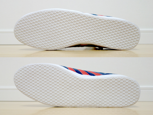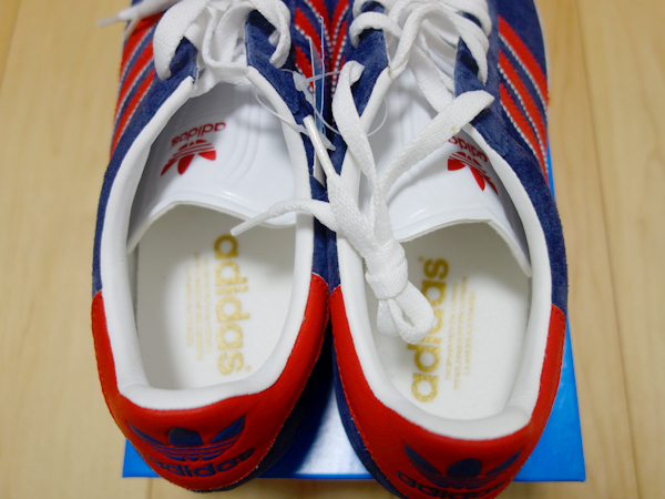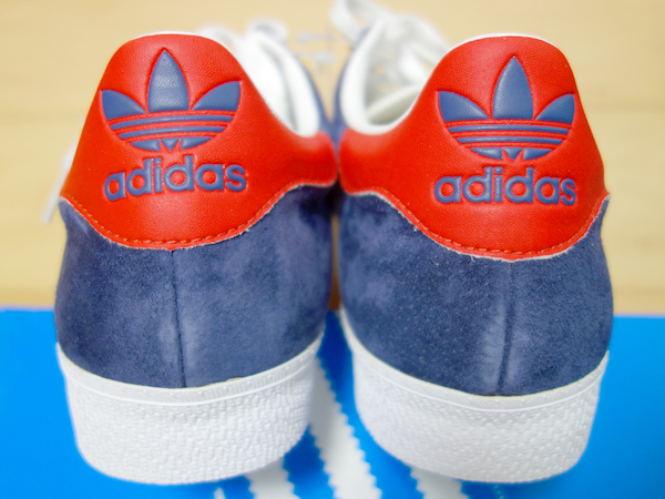 アッパーはスウェード素材で、サイドのスリーラインと踵部分、ライニングは合皮素材、