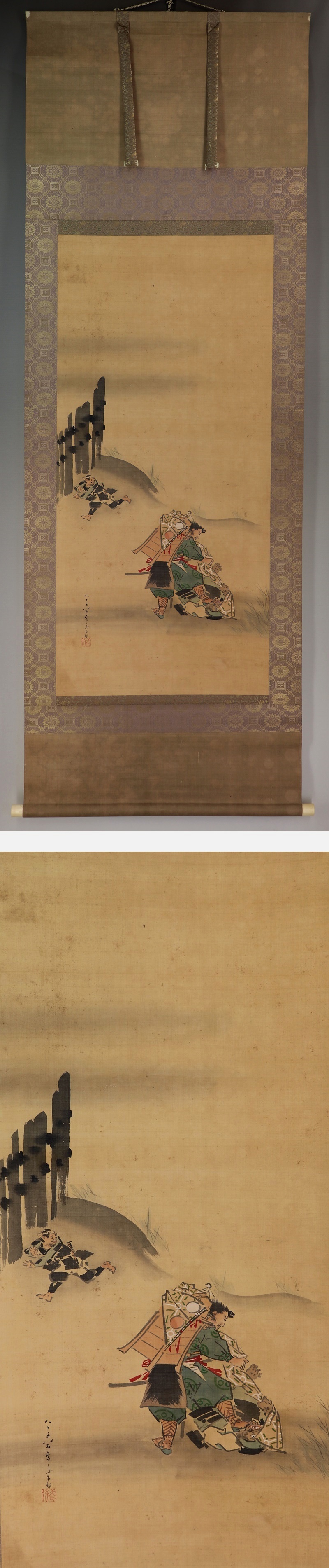 | №2109020【真作】菊池容斎【牛若丸】◆絹本◆識箱◆掛軸 | |