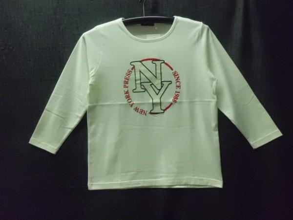 ニューヨークプレスの長袖Tシャツです。10530新品 綿100% 白(F)サイズ 日本製着丈:69cm 肩幅:45cm袖丈:55cm 胸幅:57cm前に、豪華な銀と赤の刺繍入りです。定価¥9800+税です。水曜日は定休日ですので、連絡、発送等の取引業務は 出来ませんのでよろしくお願い致します。 定休日以外連絡可能な時間は、11時~18時迄です。